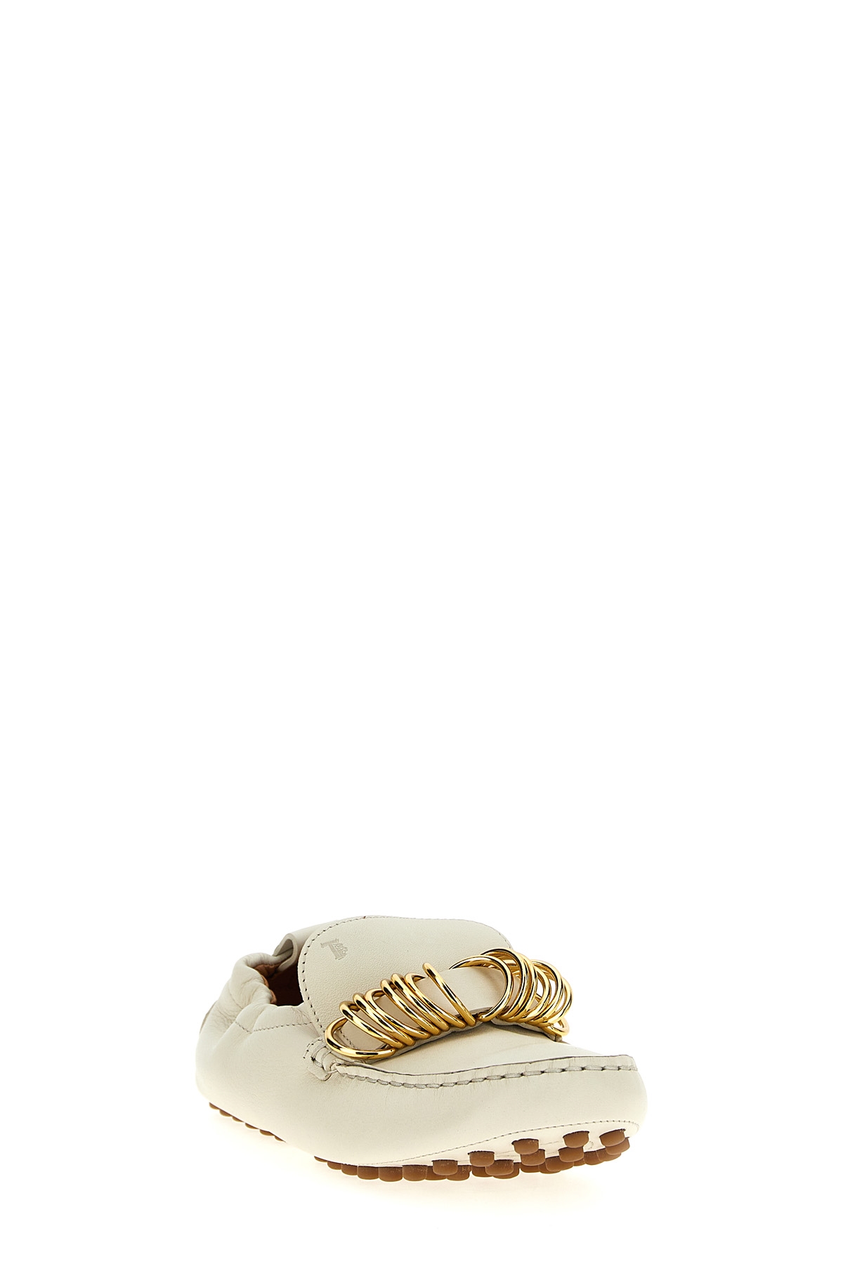'Gommino' leather loafers with strap with gold metal rings detail, iconic rubber sole.