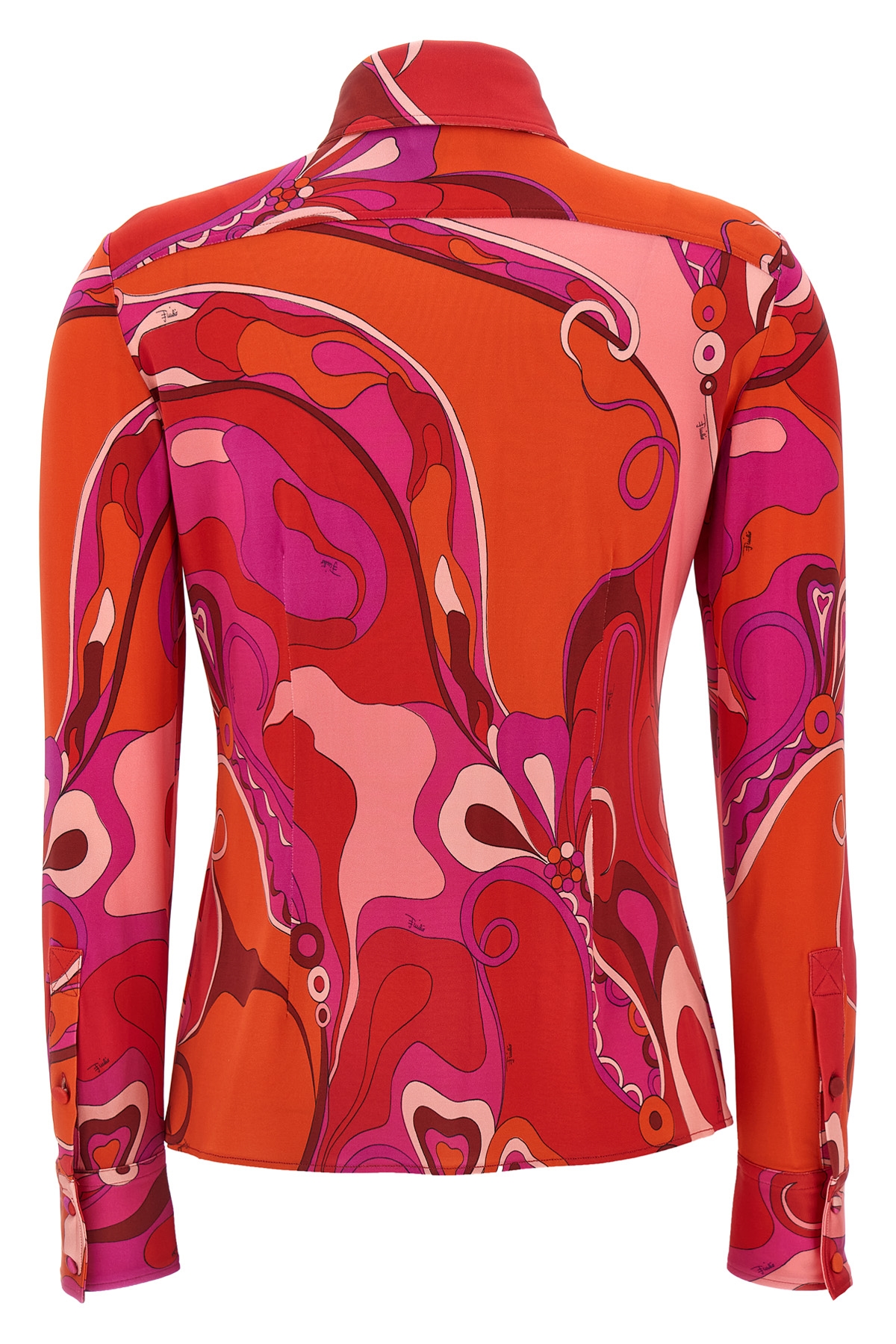 'Orchidee' print stretch jersey shirt, button closure, long cuffed sleeves.
