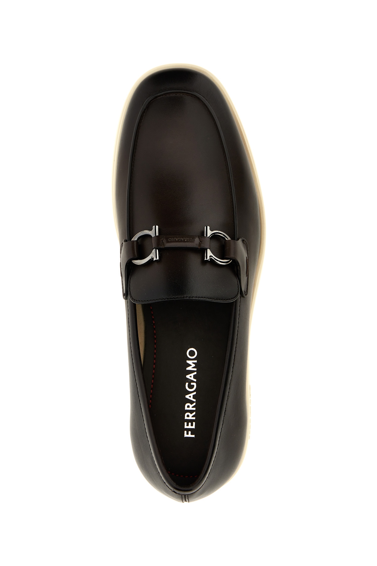 'Cosimo' smooth leather loafers with front metal hook detail, rubber sole.