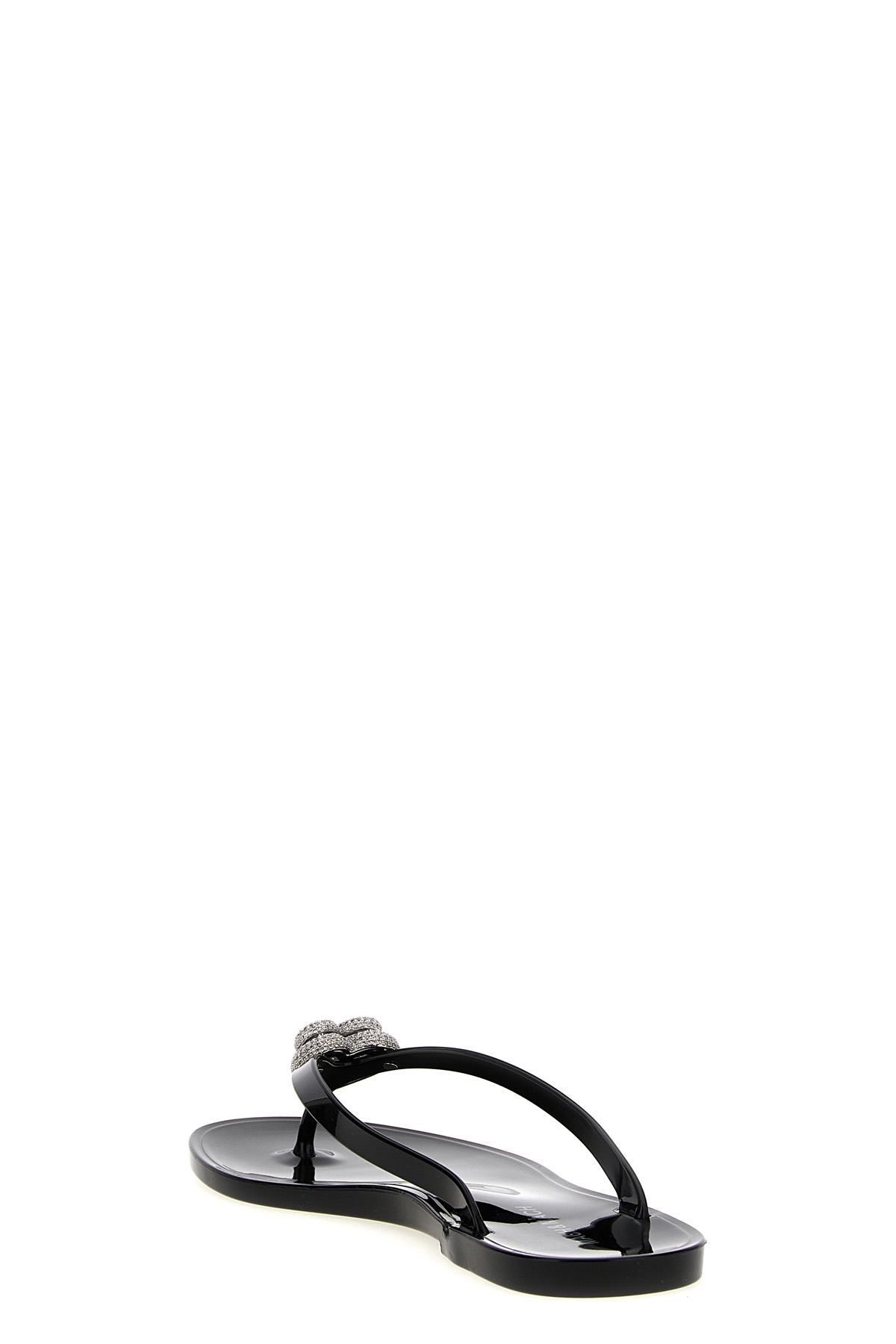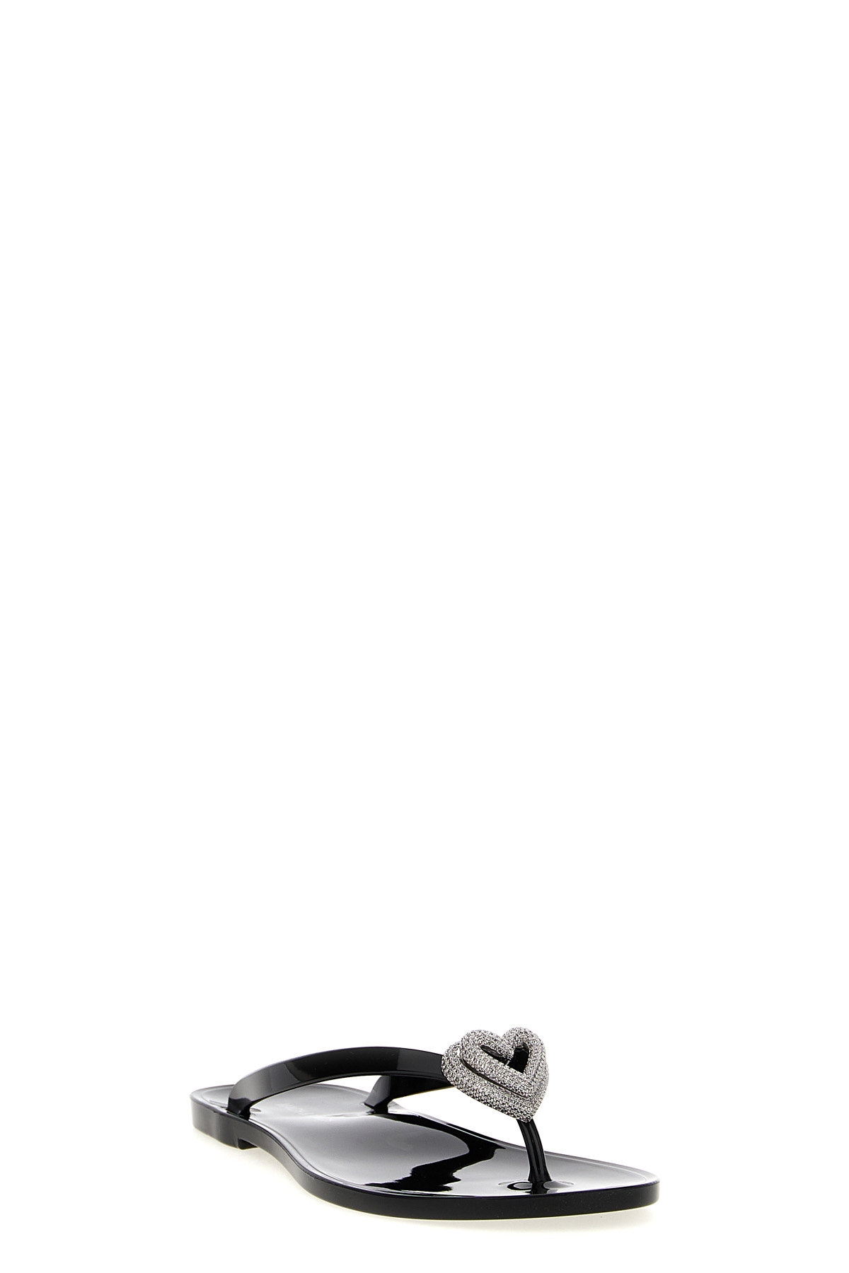 Rubber sandals, flip-flops model with 'Double Heart' jewel decoration at the front.