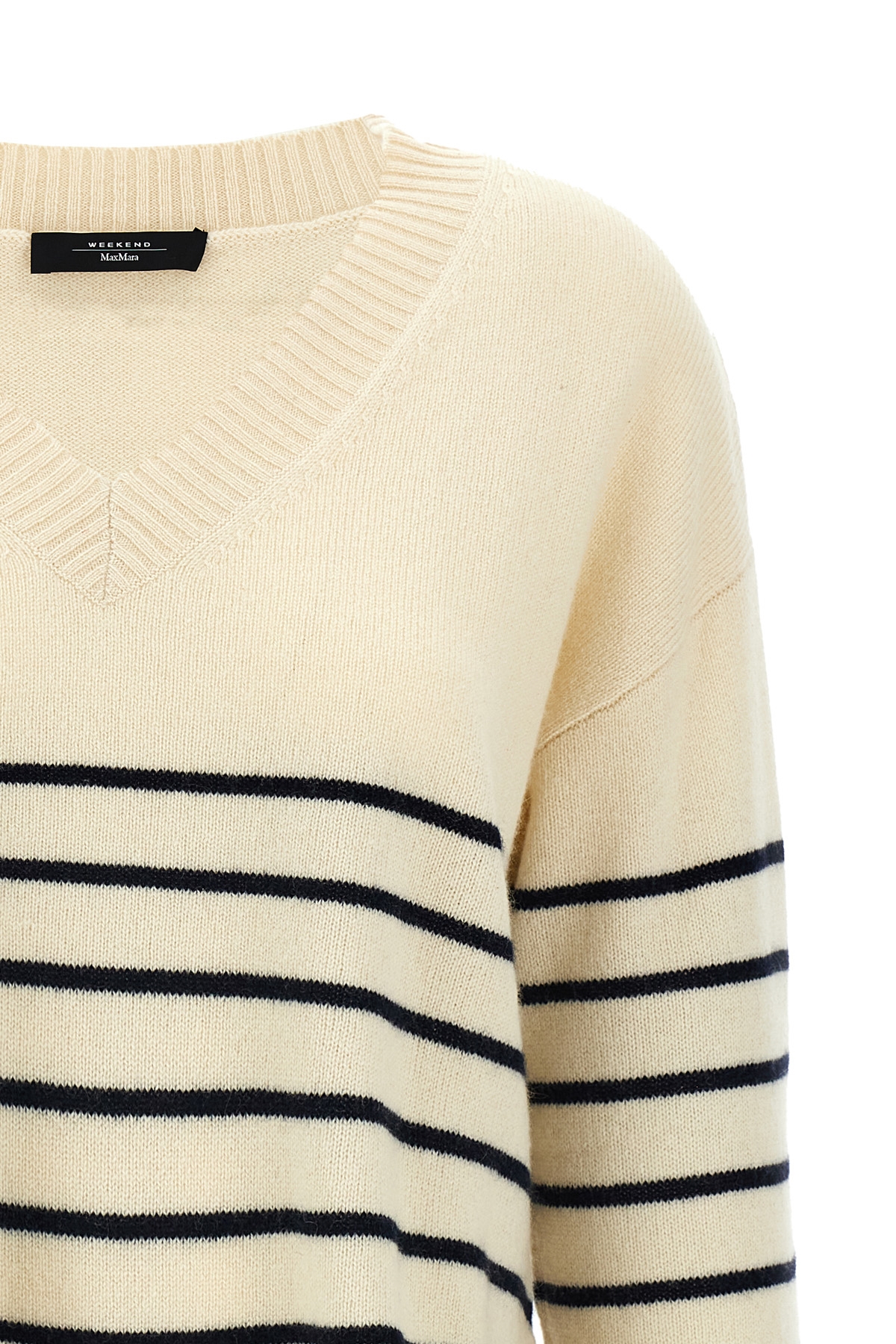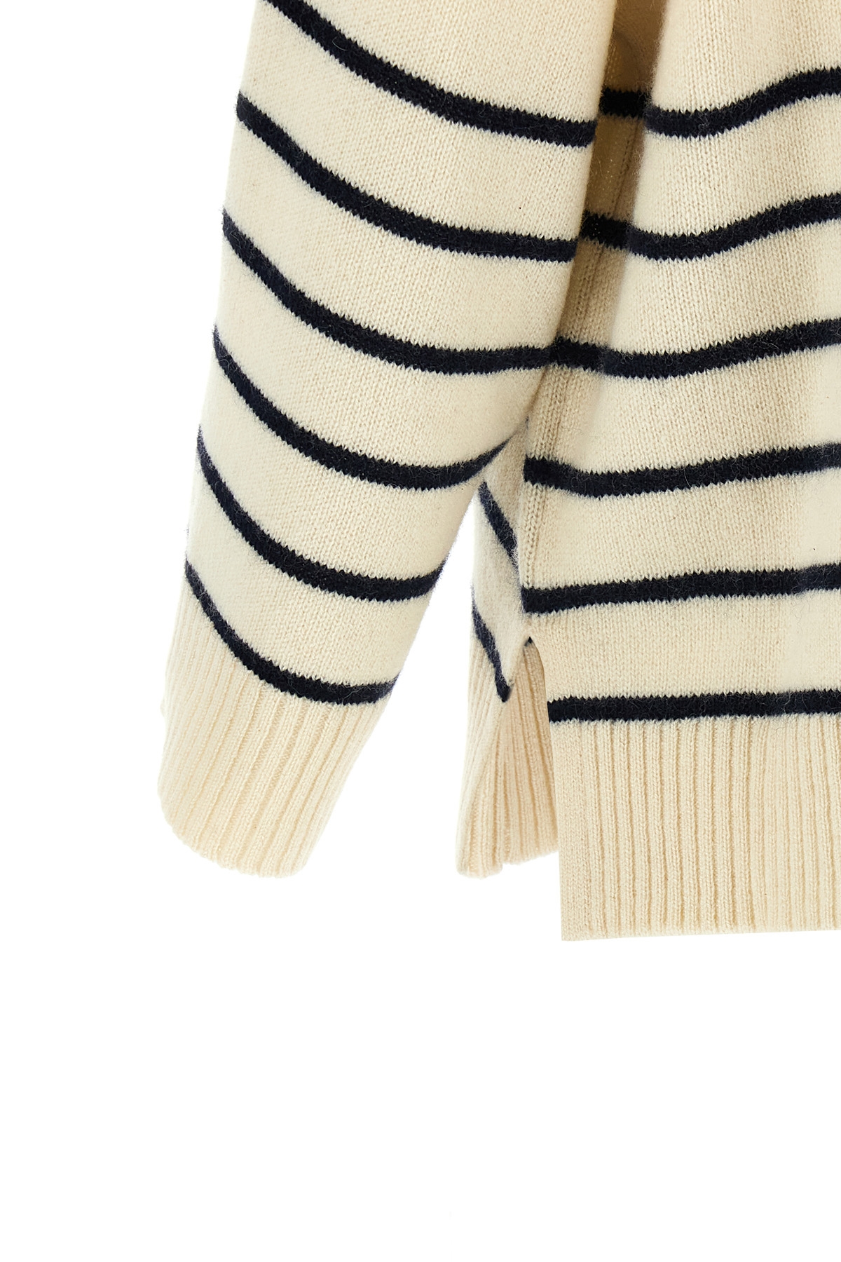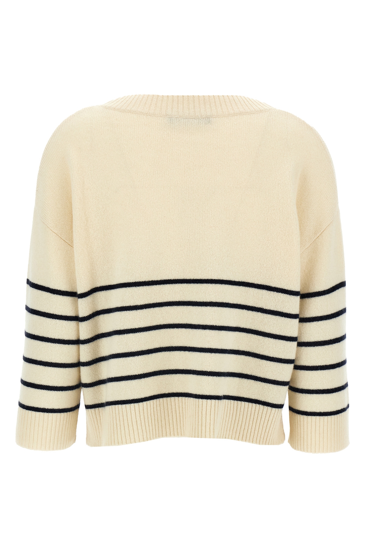 'Leva' striped cashmere cropped sweater with V-neck, 3/4 sleeves.