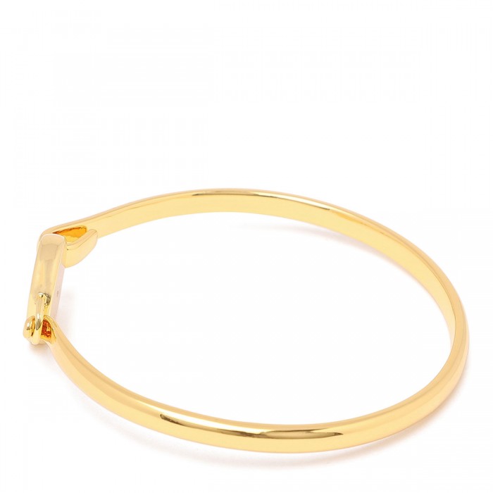 Gold-plated brass The Button hinge bracelet from Marc Jacobs featuring button-shaped detail with enameled insert, glass crystal accents and logo engraved, hooked hinge closure.