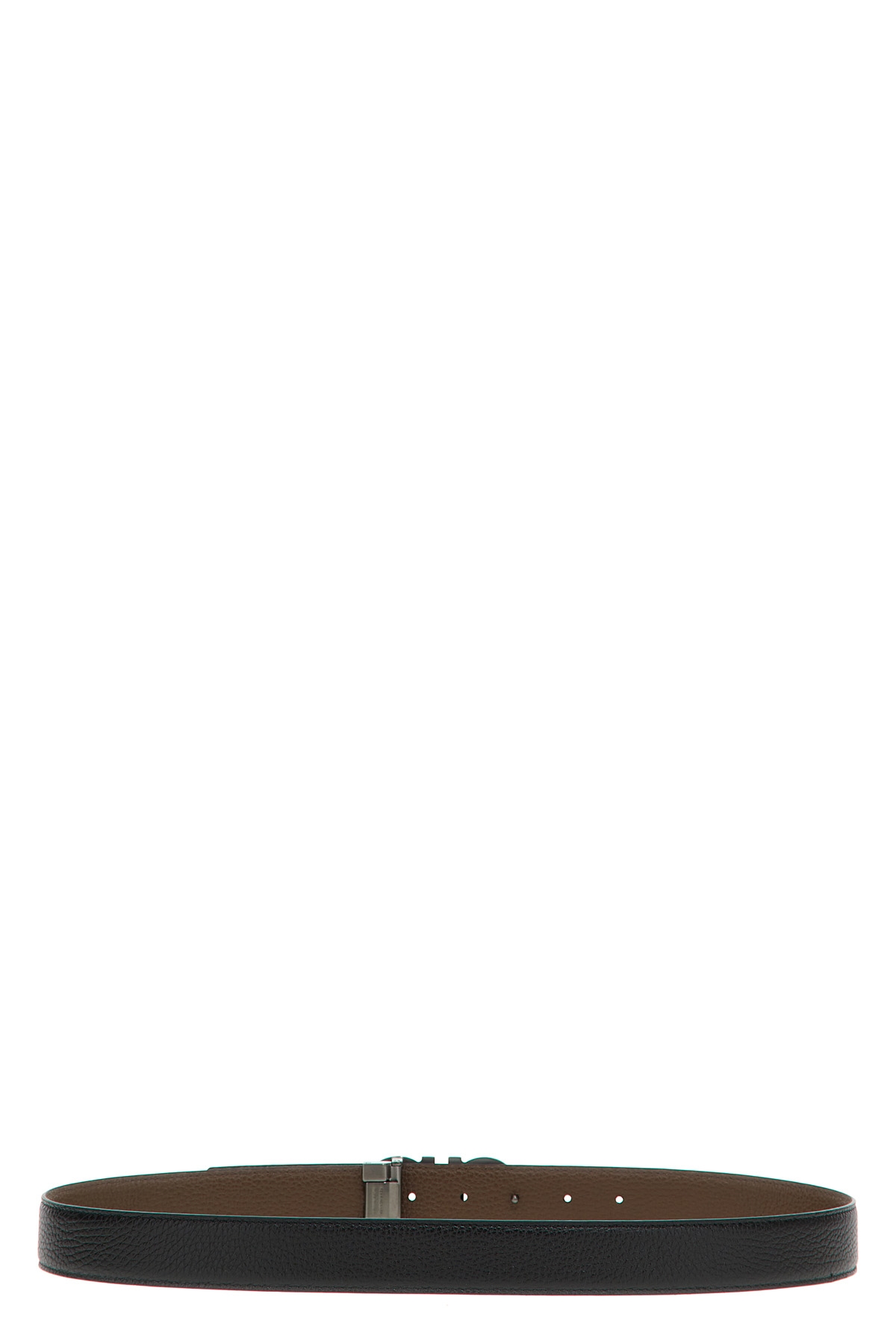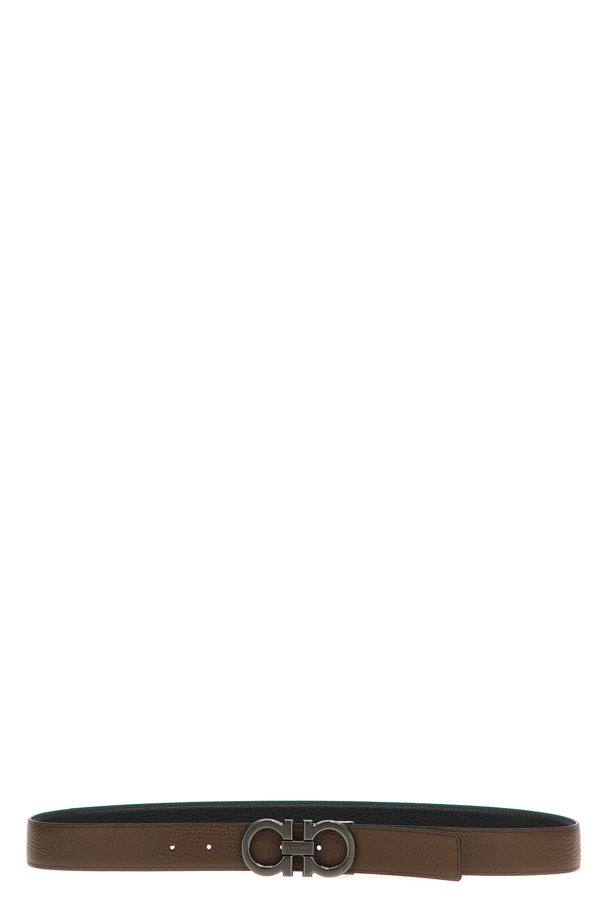 Reversible grained leather belt with metal 'Gancini' buckle.