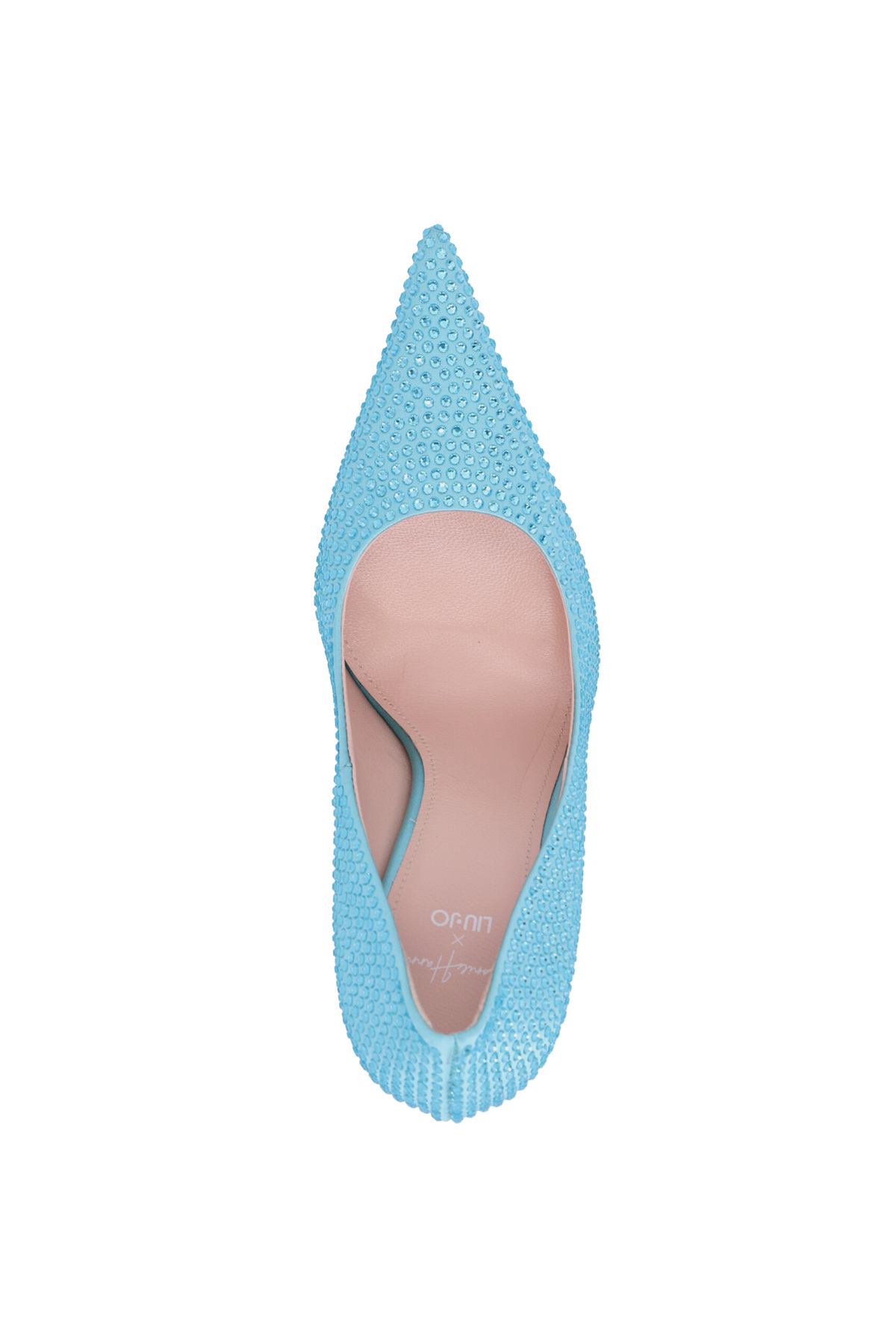 Liu Jo x Leonie Hanne satin pumps featuring all over sequins, a pointed toe and a leather sole.