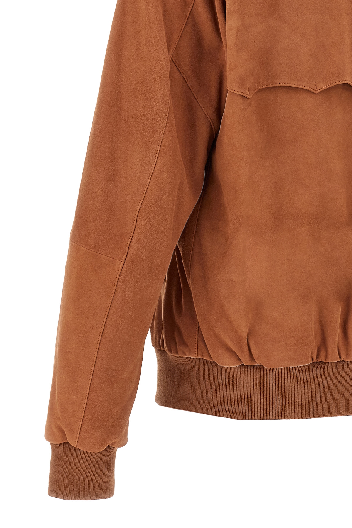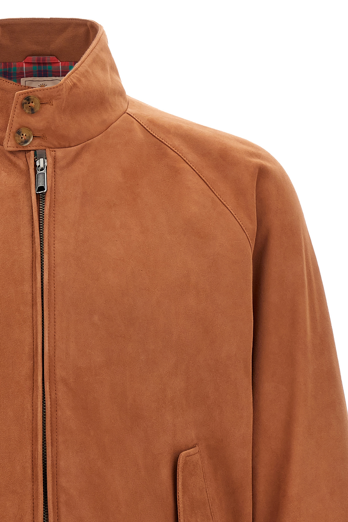 Suede bomber jacket with contrasting cotton lining, tartan fabric. Zip closure and button closure on the neck. Equipped with pockets.
