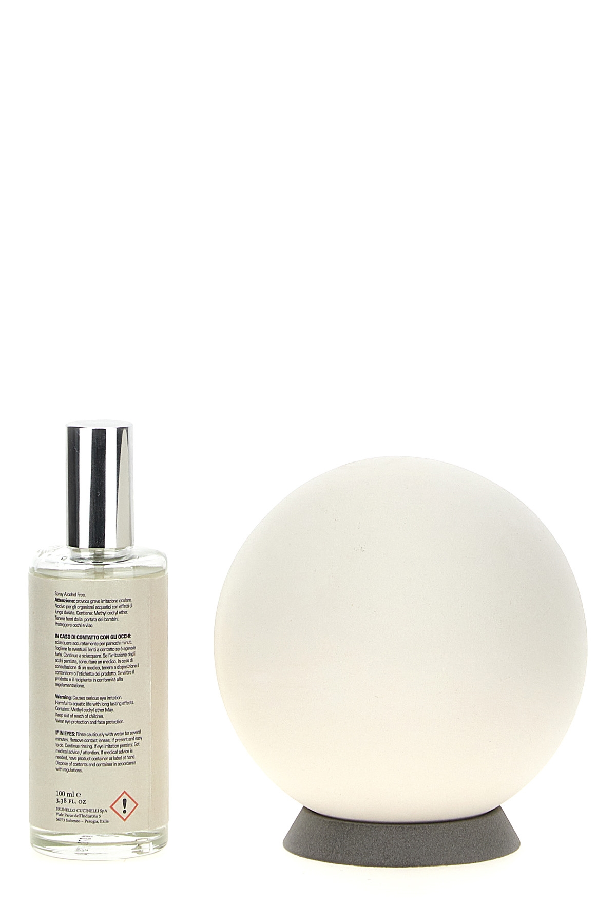 The "Sol" fragrance, contained in a replacement glass bottle with a capacity of 100 ml, does not contain alcohol, which must be sprayed directly on the sphere. A chalk ball with stand is included.