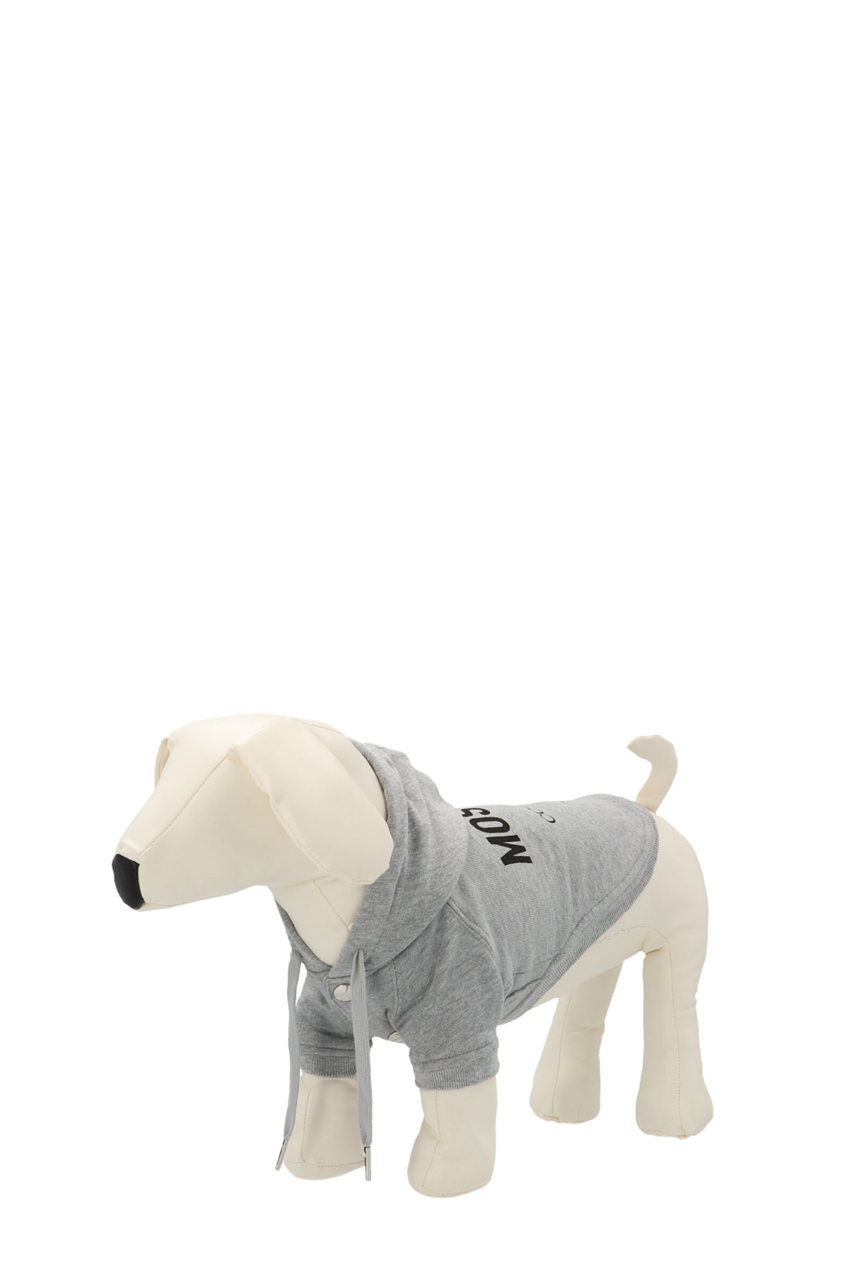 Moschino Pets capsule cotton hoodie featuring clip buttons and a logo print.