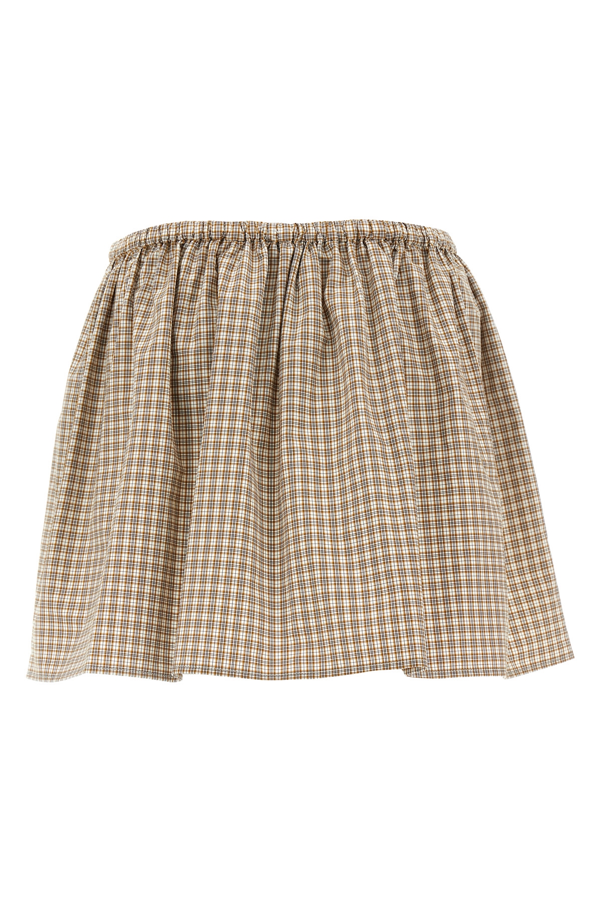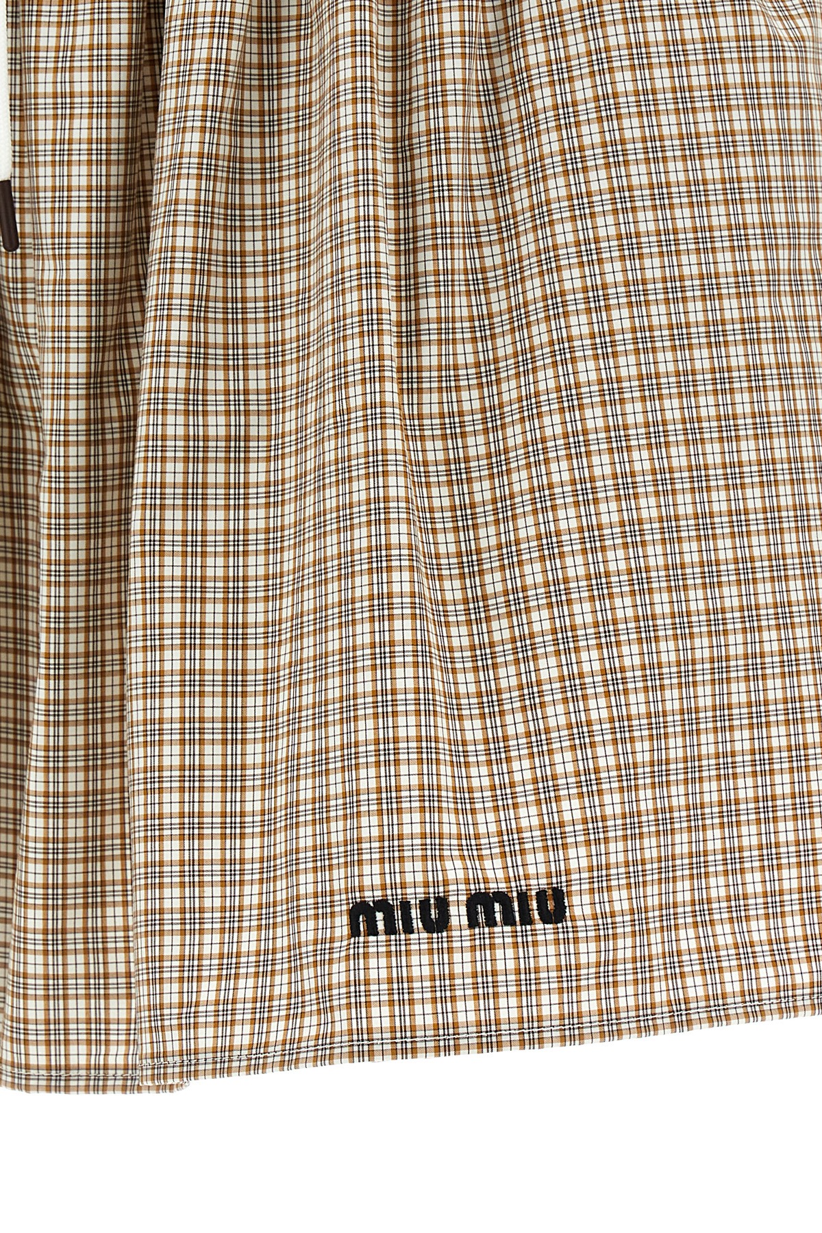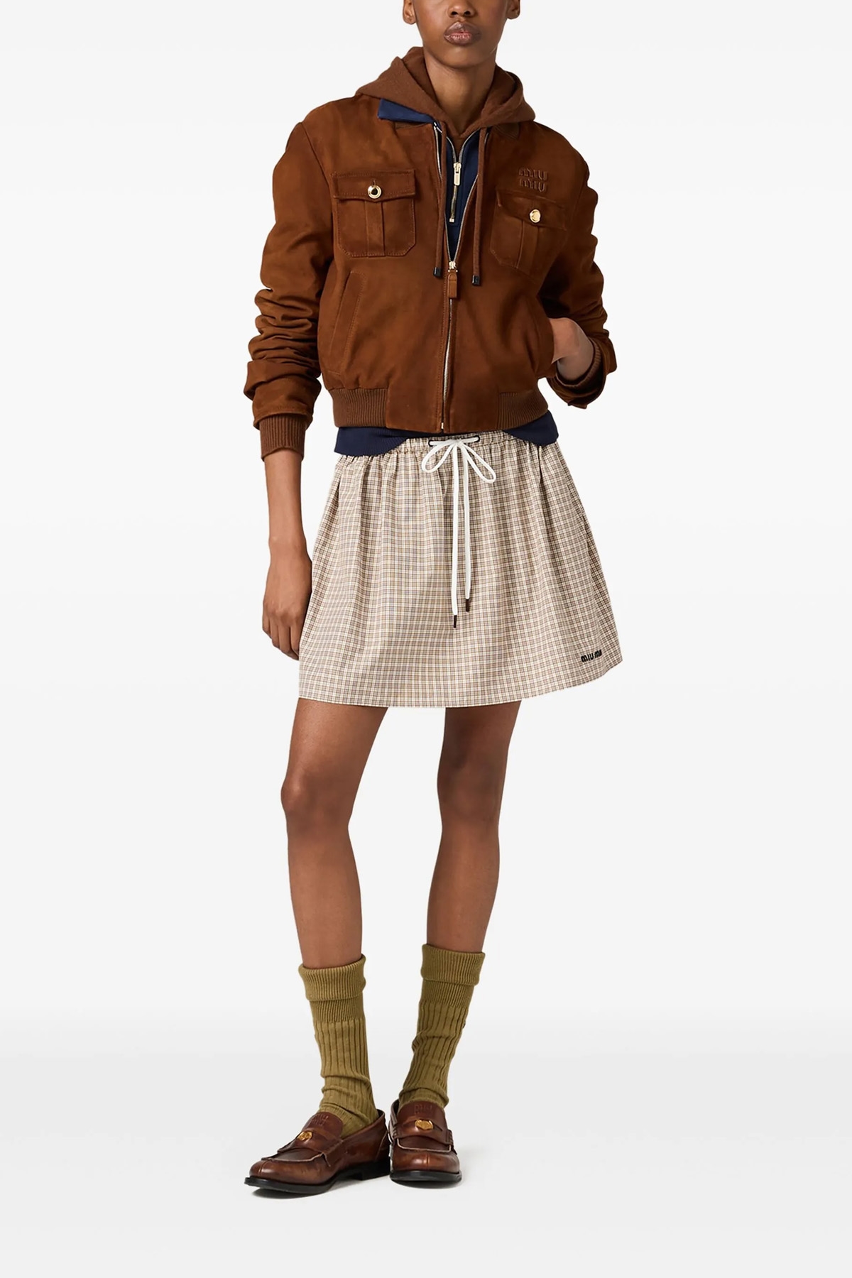 Tartan cotton poplin mini skirt with drawstring at the waist and a contrasting logo.