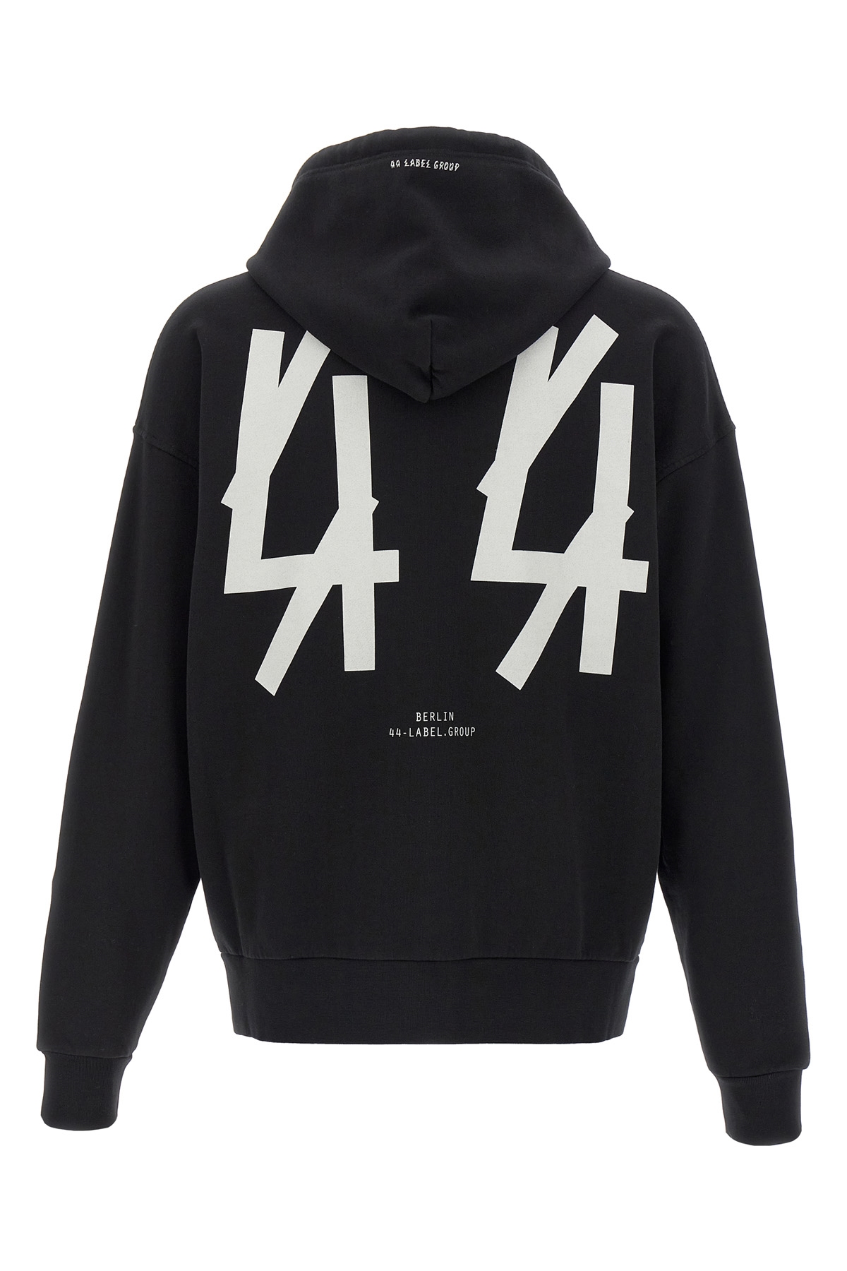 Gauze cotton hoodie with zip closure, logo print on the back.