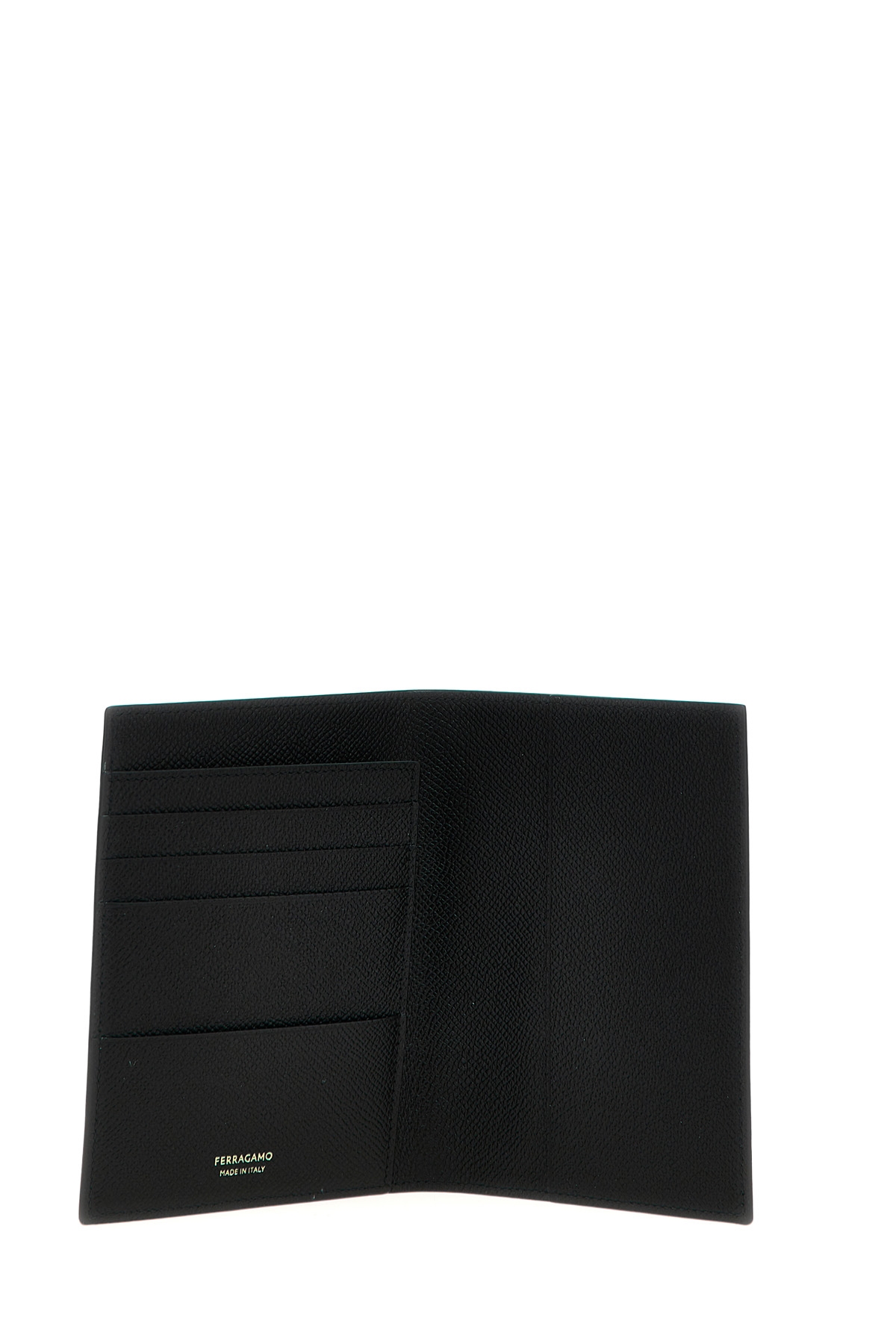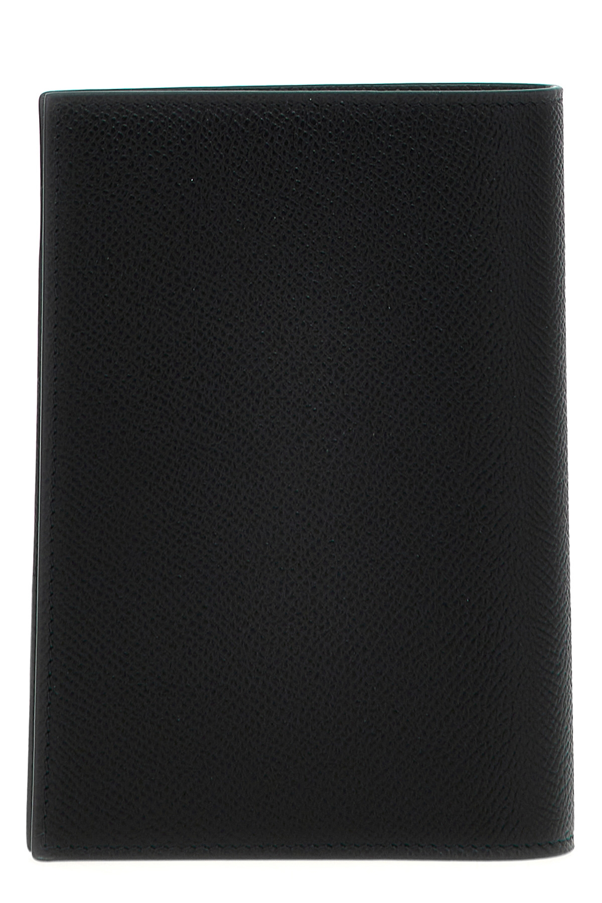 'Micro gancio' hammered leather passport holder with metal logo detail.