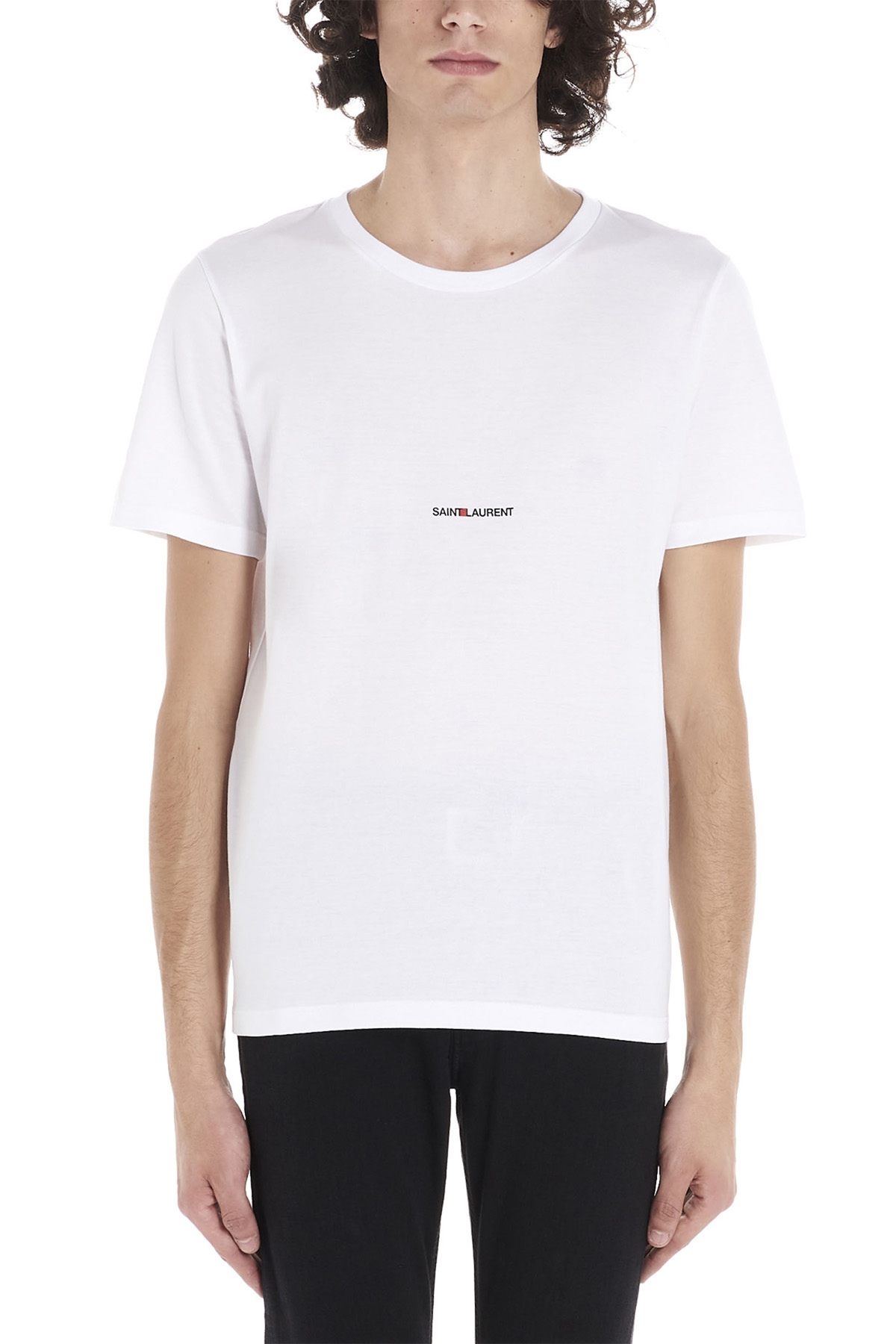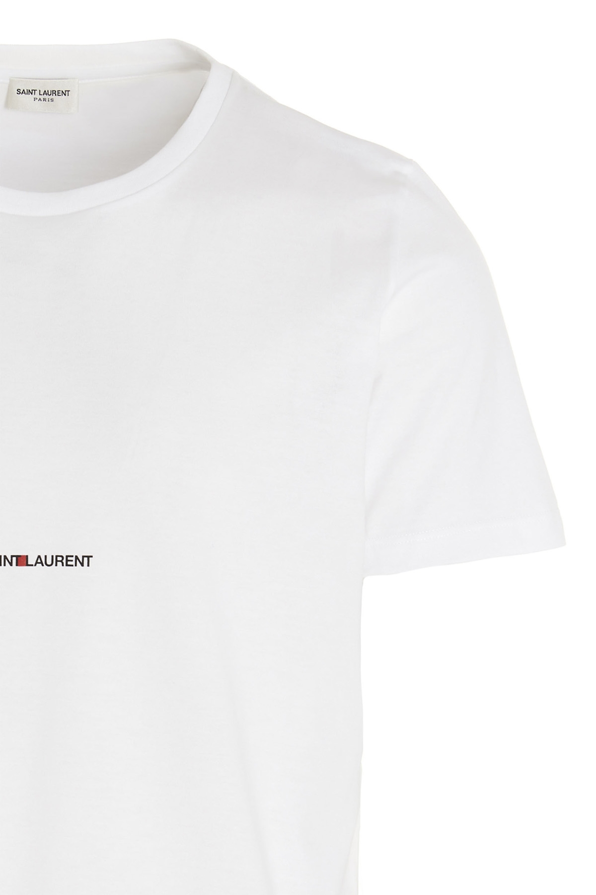 'Saint Laurent Rive Gauche' cotton, crewneck t-shirt with short sleeves and a contrasting front logo print.