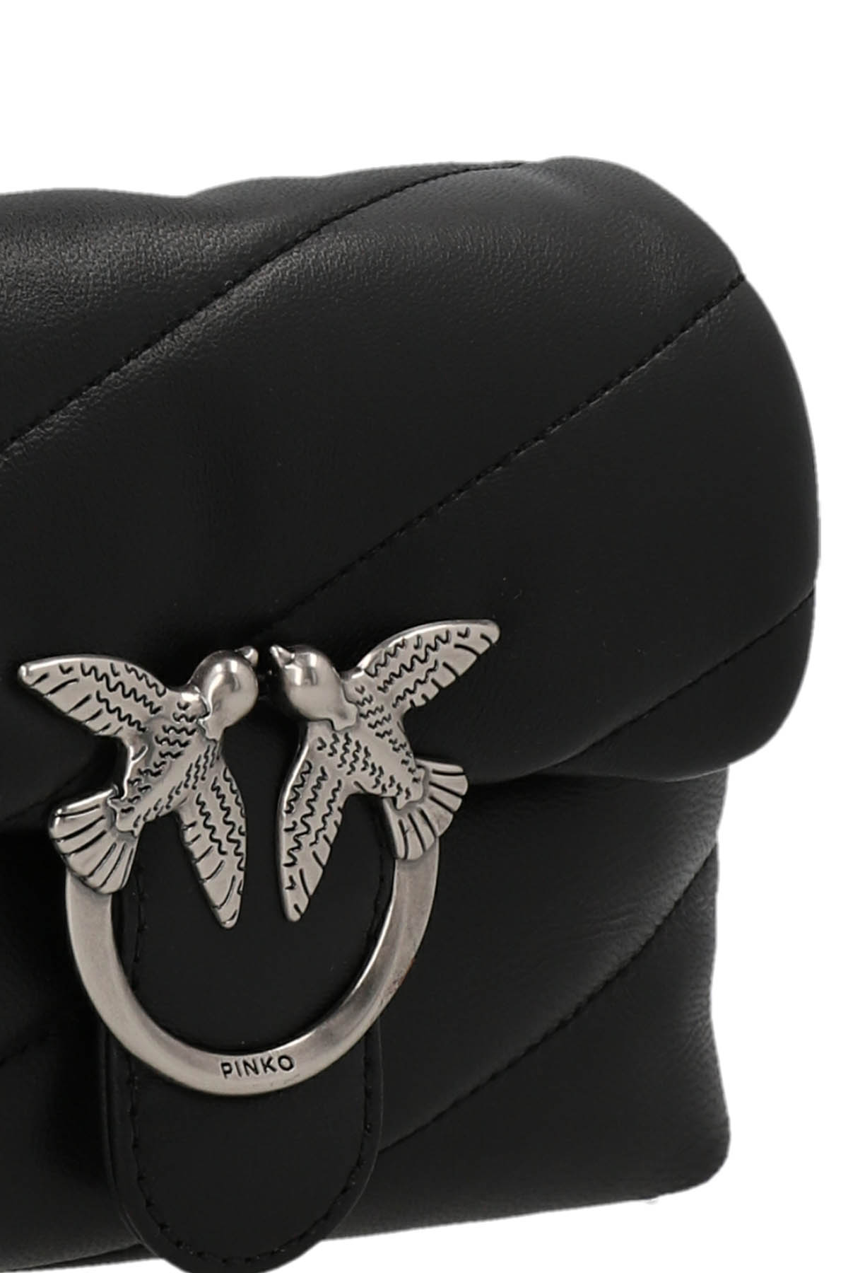 'Love Baby Puff' quilted leather crossbody bag with flap closure with front metal logo, chain shoulder strap.lder strap.