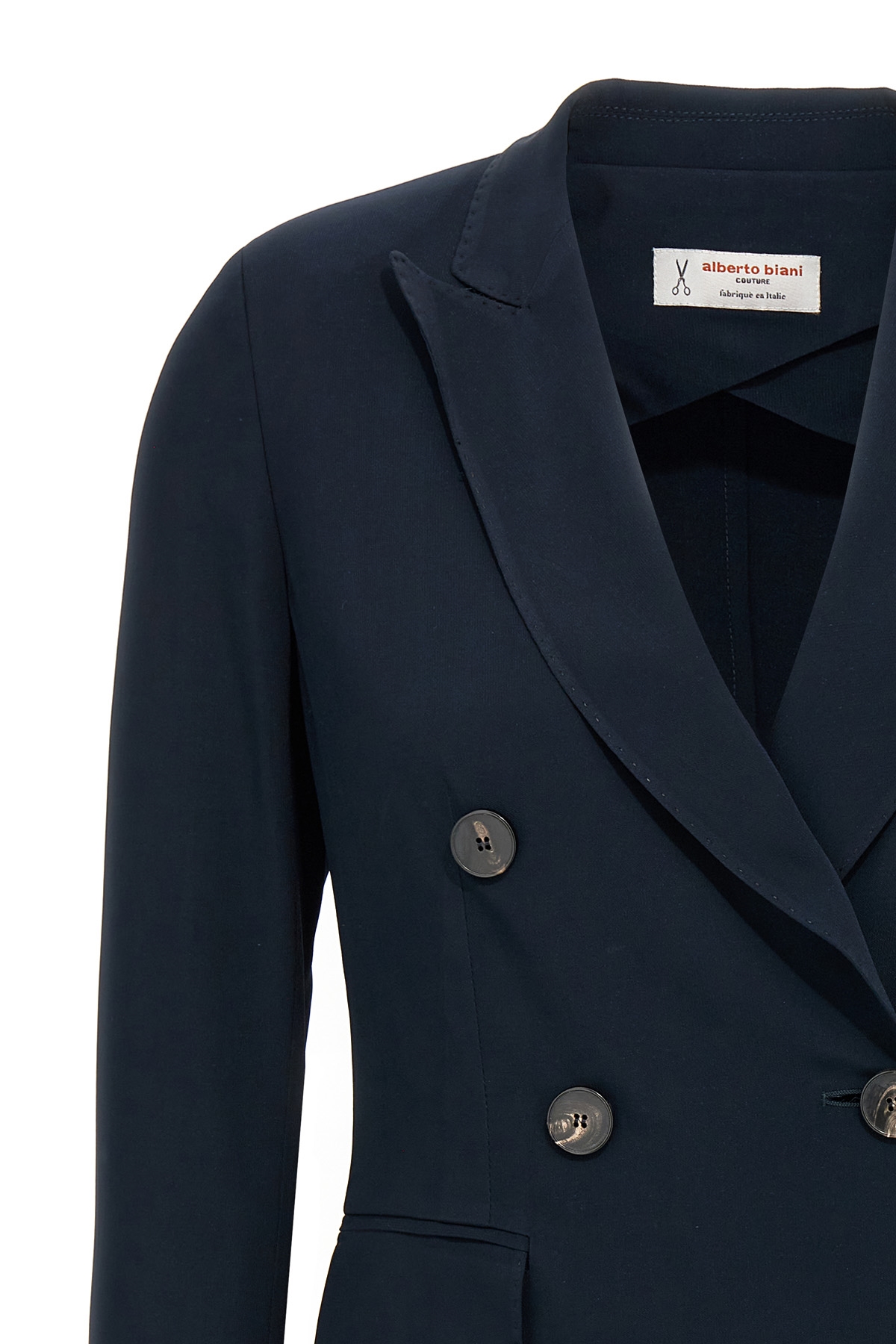 Viscose blazer jacket, double-breasted, unlined, single split at the back.