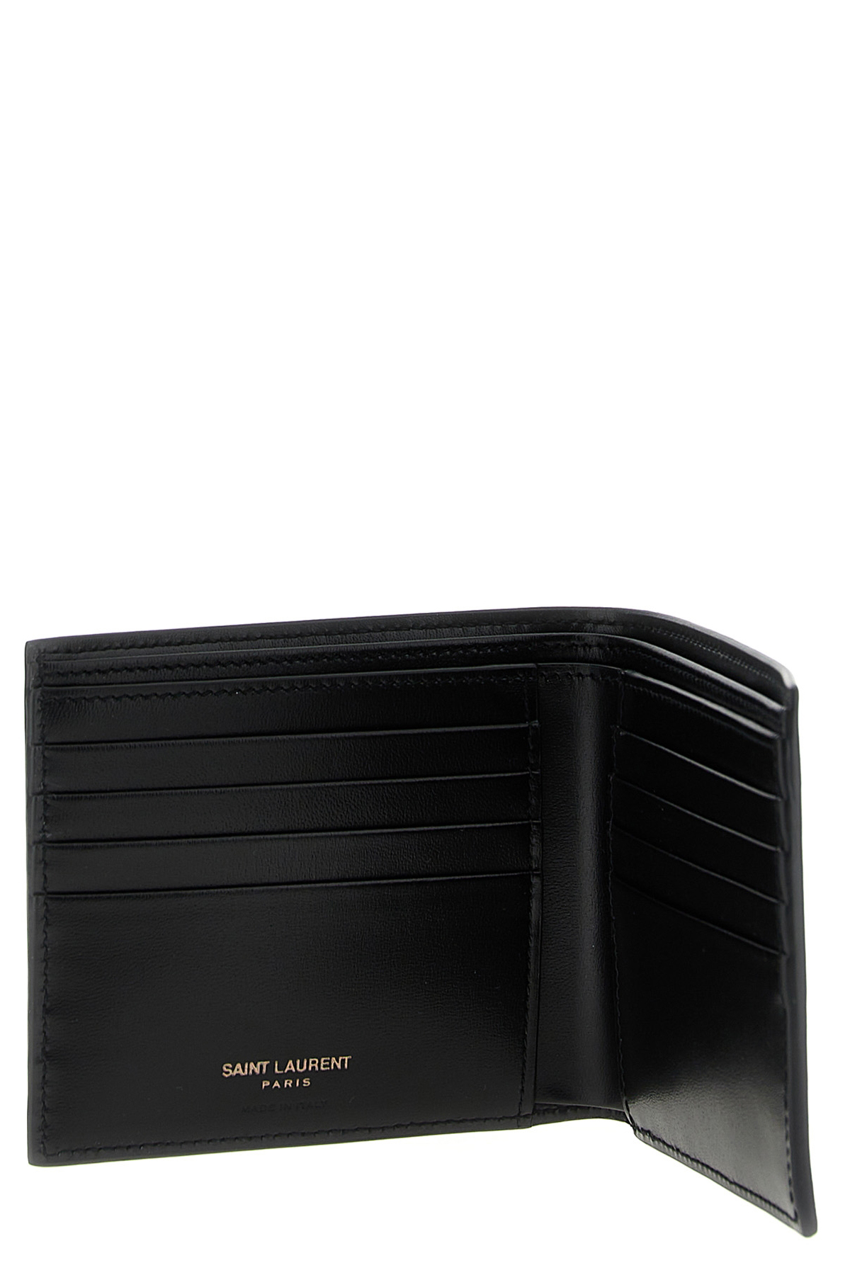 Black Leather 'Cuir Glace Mat' smooth leather On-tone 'YSL' logo Book closure