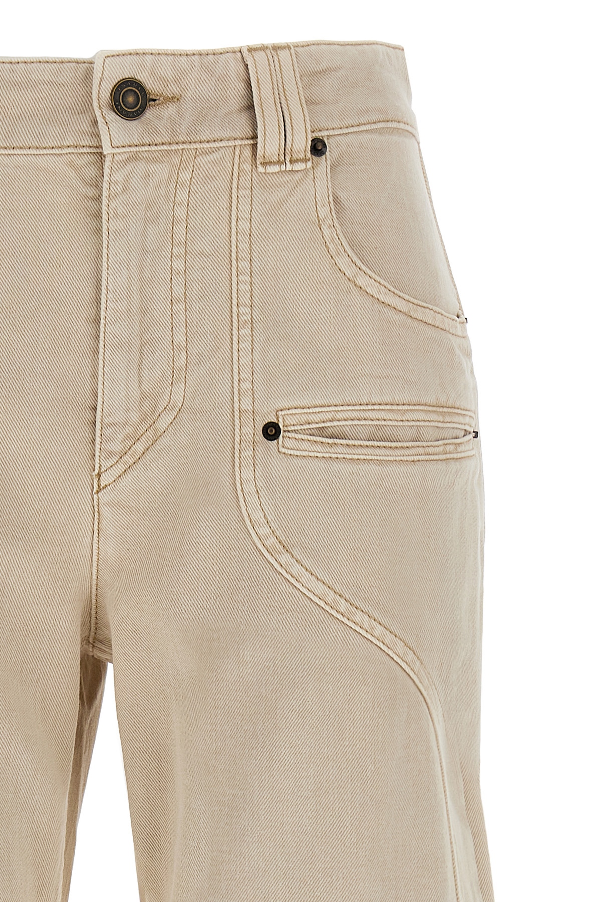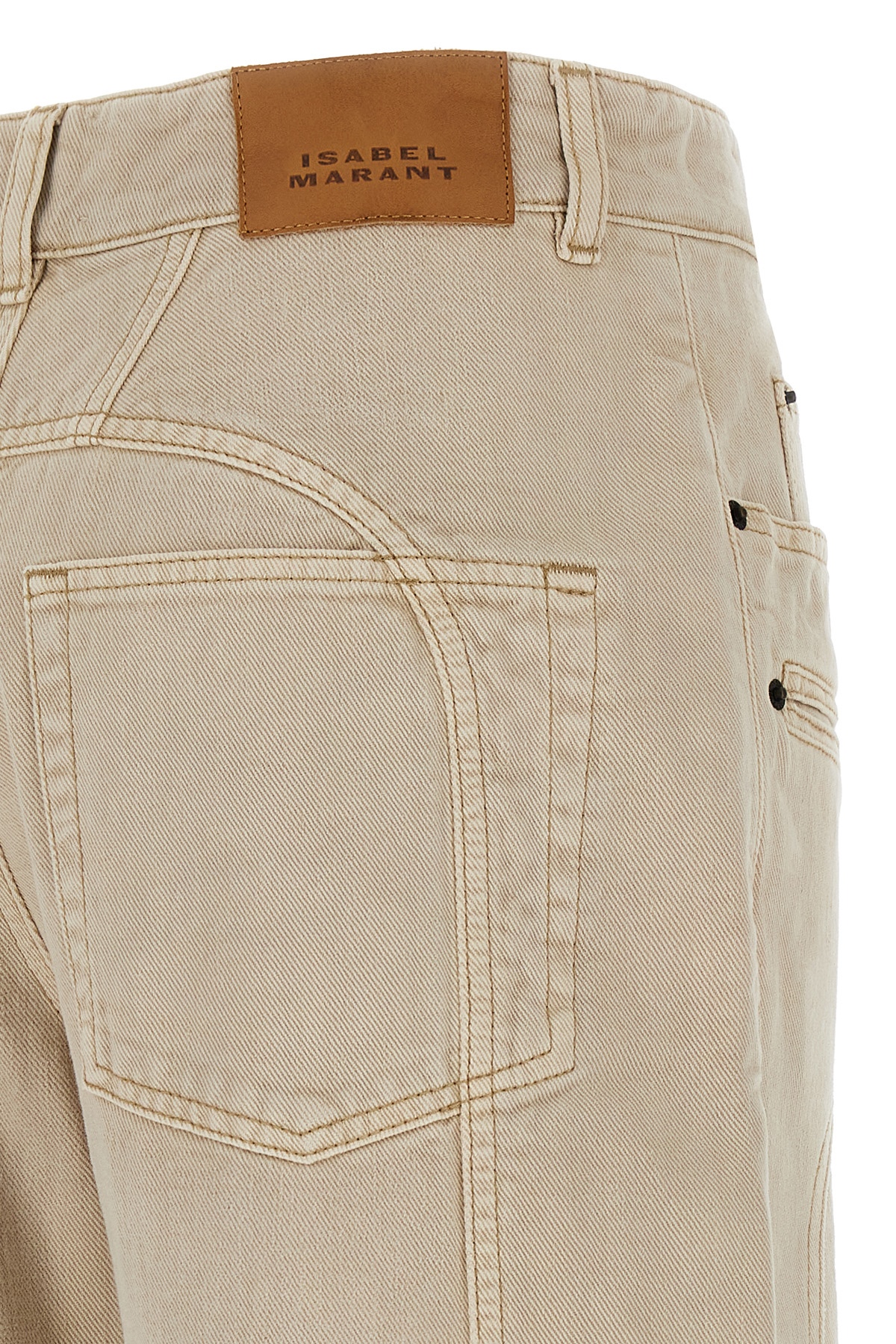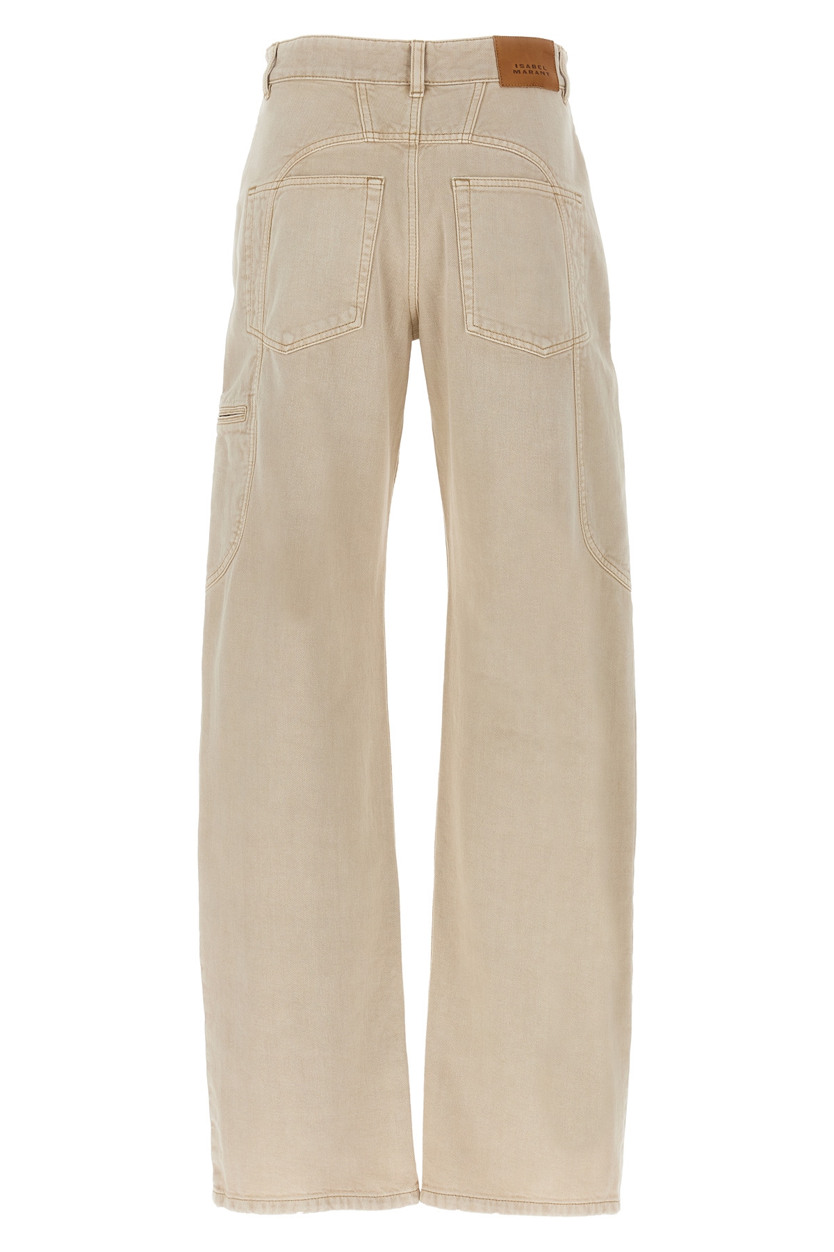 Garment-dyed cotton denim Betiane jeans with front and back stitching, zip and button closure, pockets, straight leg, and leather logo label at the back.