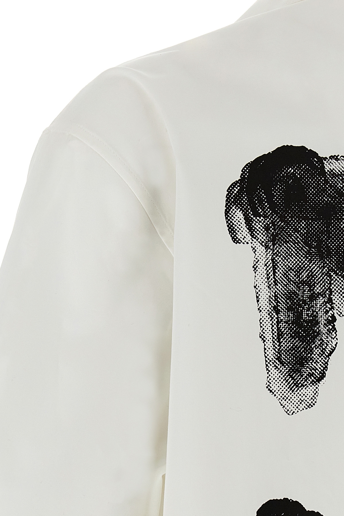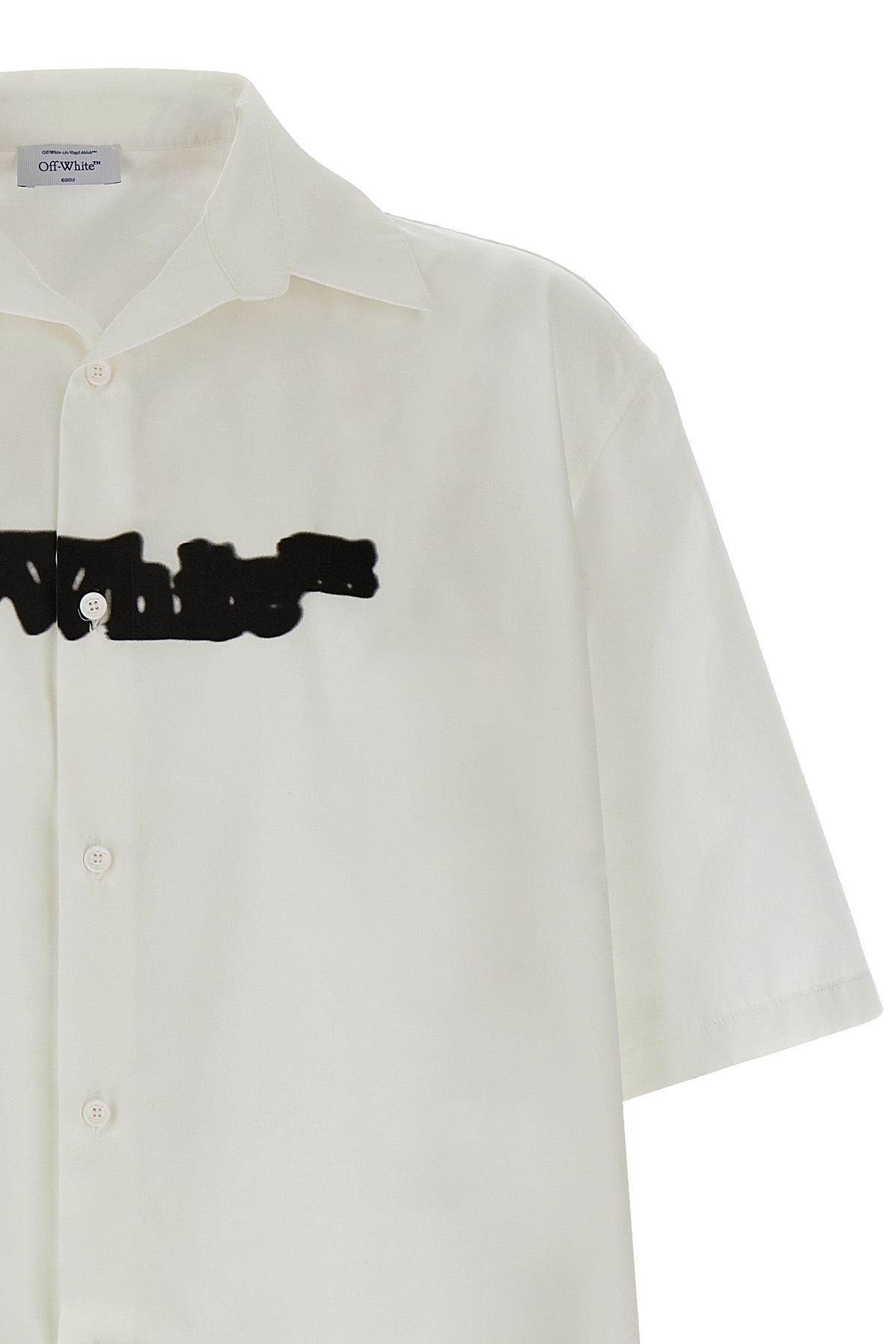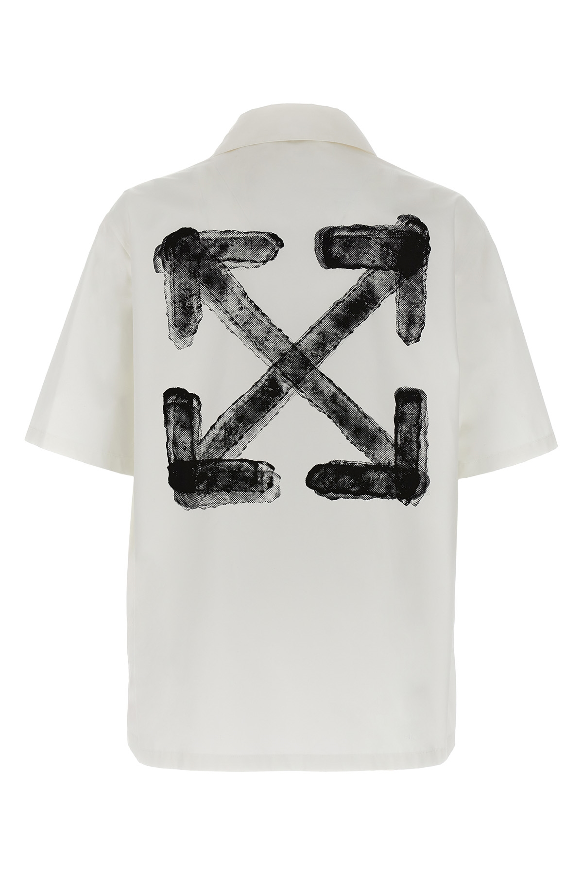 'Spray arrow' cotton poplin shirt with print on the front and back, bowling style with short sleeves and button closure.