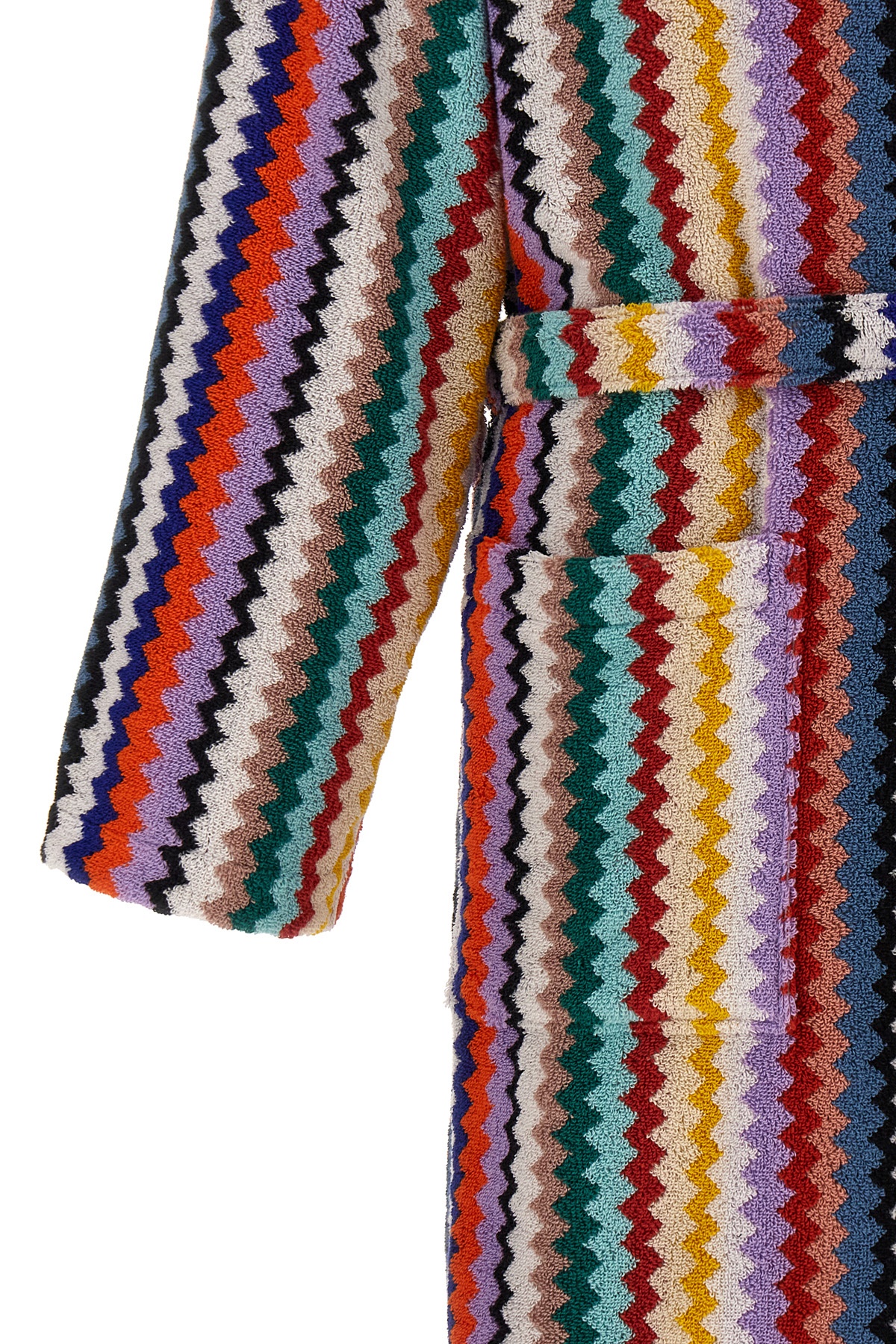 'Riverbero' cotton terry hooded bathrobe with zigzag pattern.
