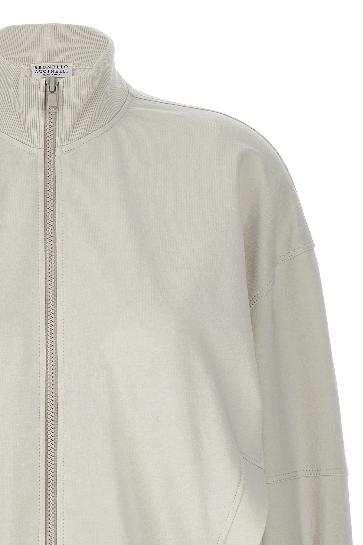 Jersey sweatshirt with zip closure, pockets, long cuffed sleeves with 'Monile' detail.