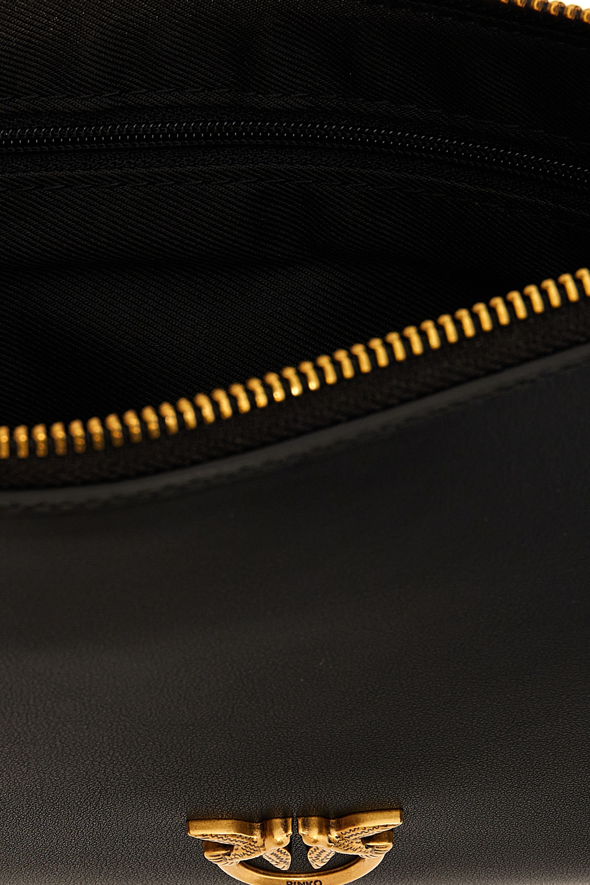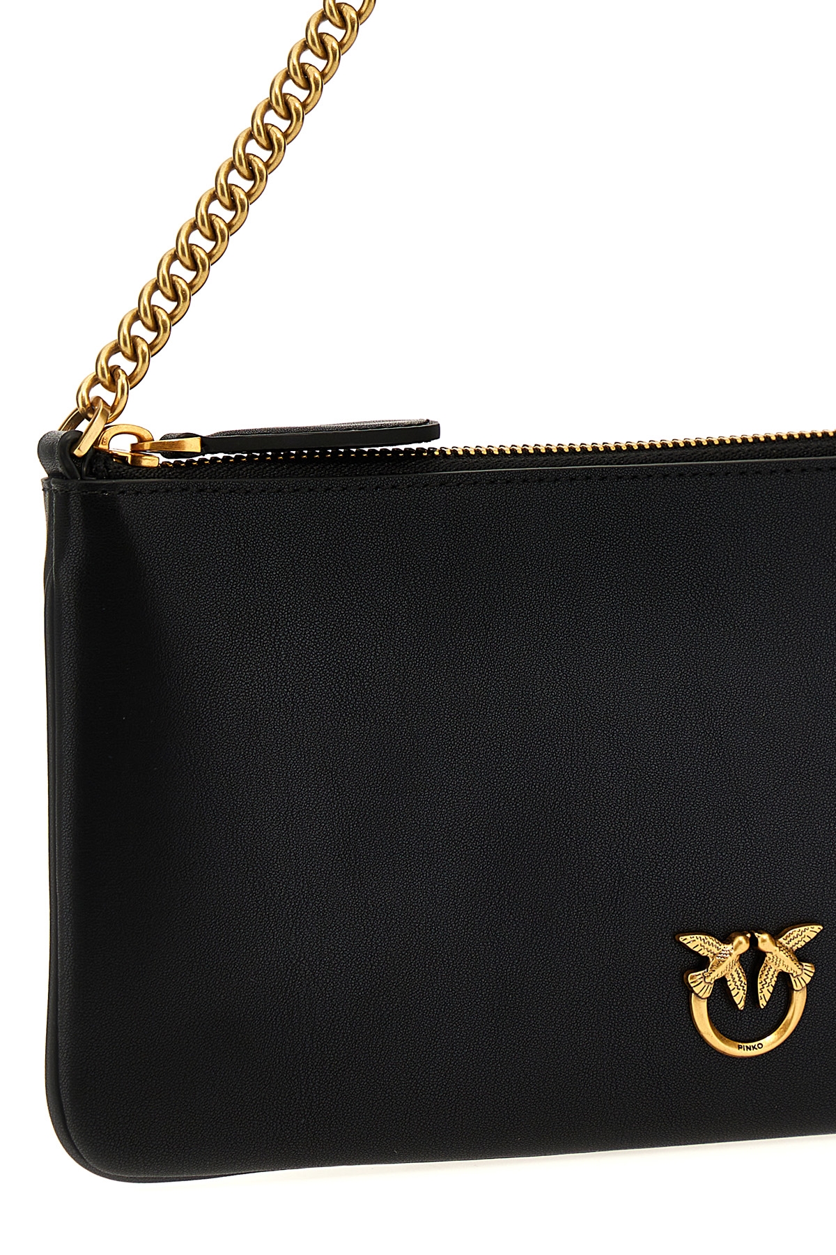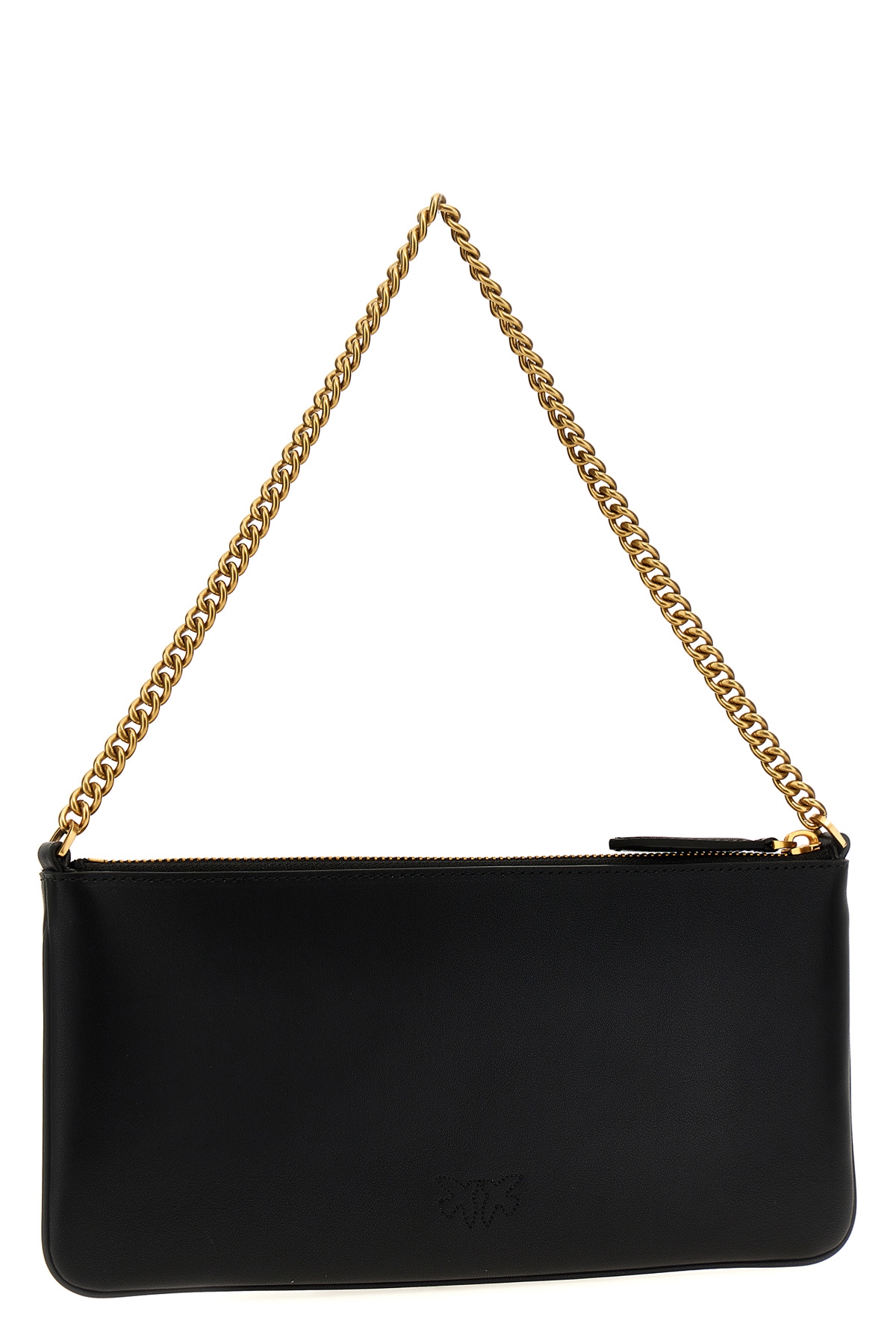 'Horizontal Flat' leather clutch bag with front metal logo, zip closure, chain handle.