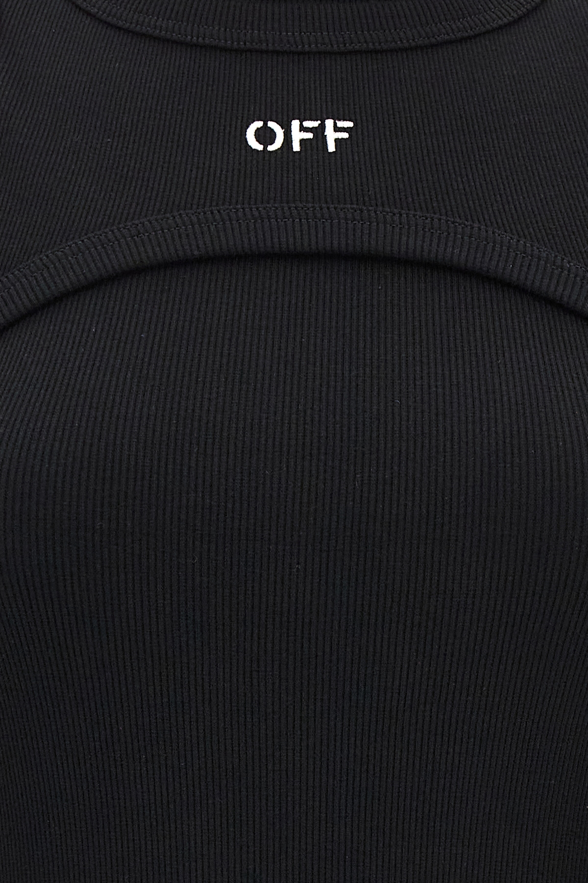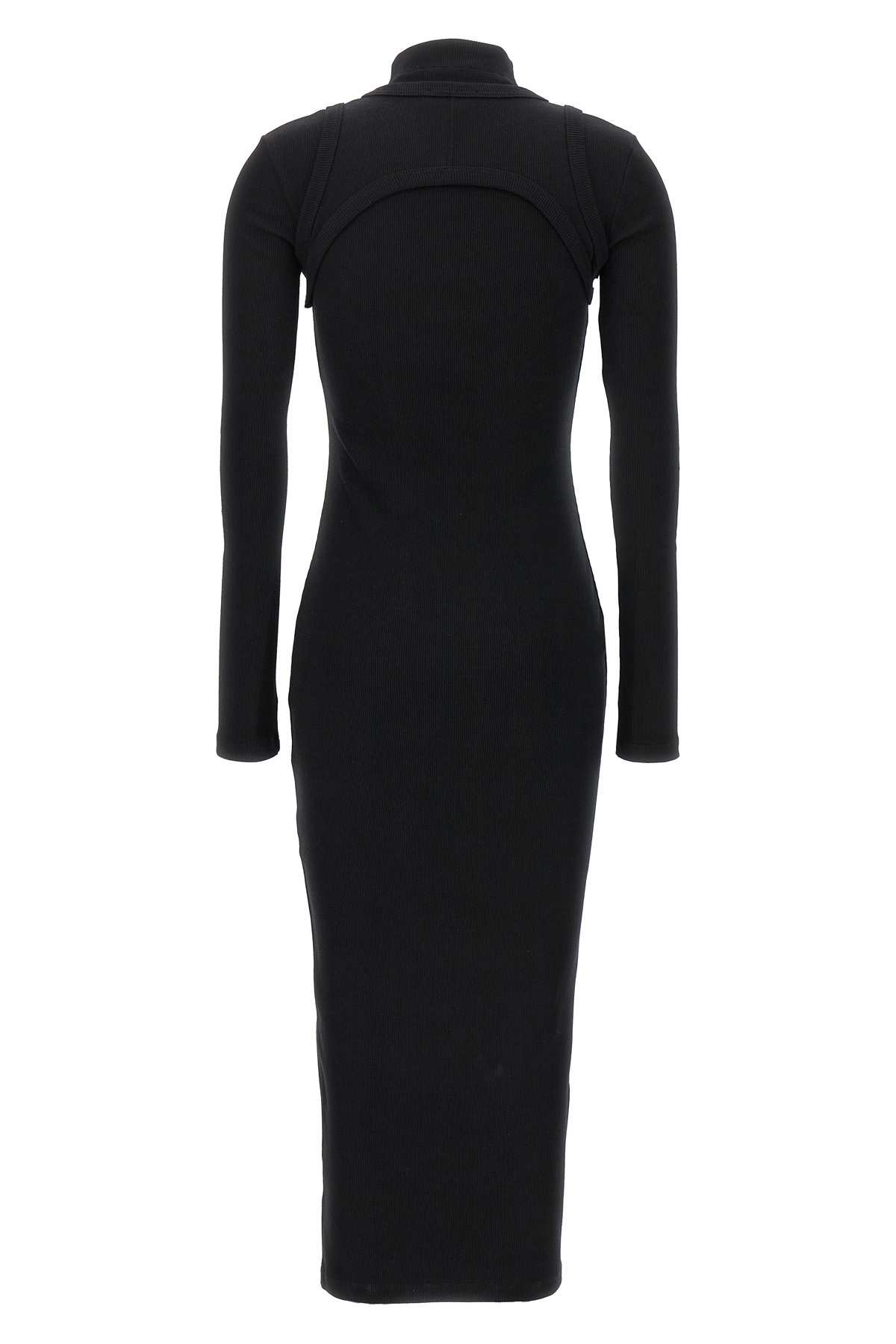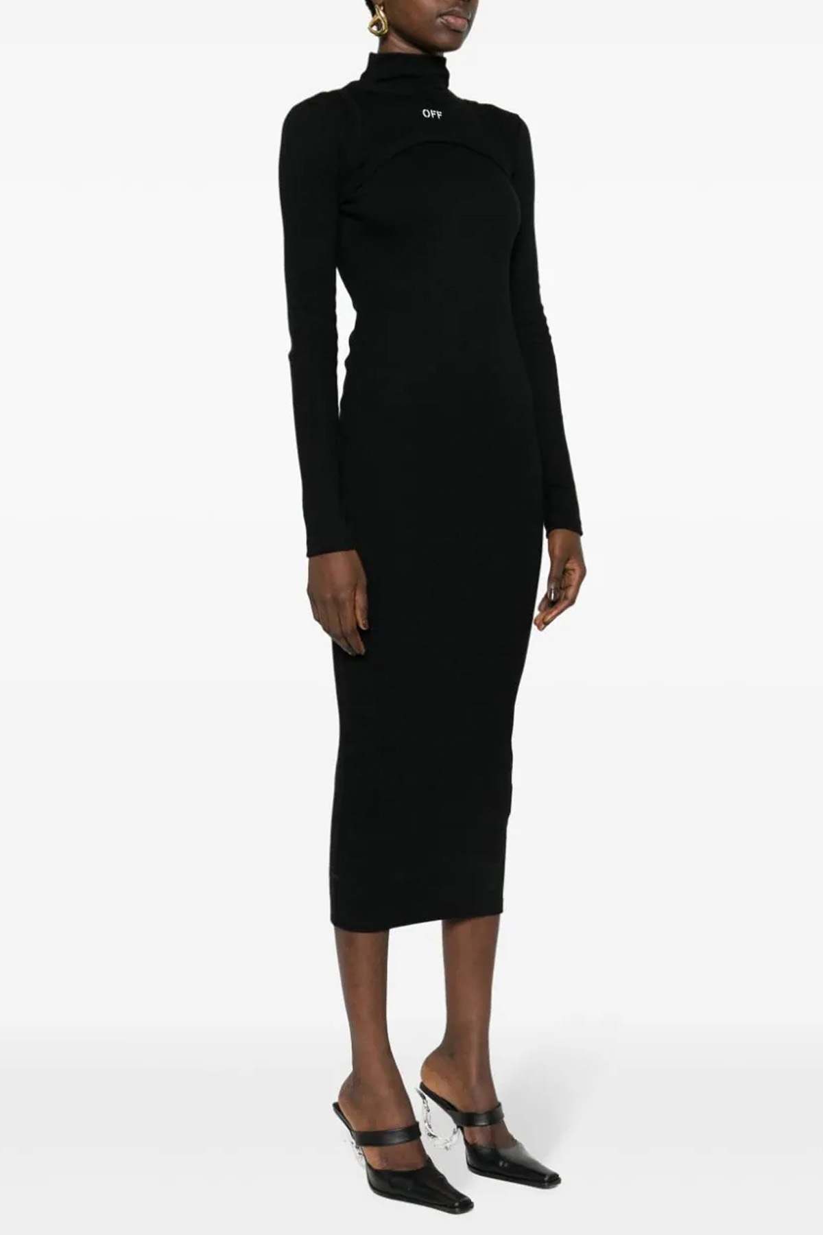 'Off stamp' stretch cotton dress, long model with long sleeves, crewneck, with a bodice-like part on top with embroidered logo.