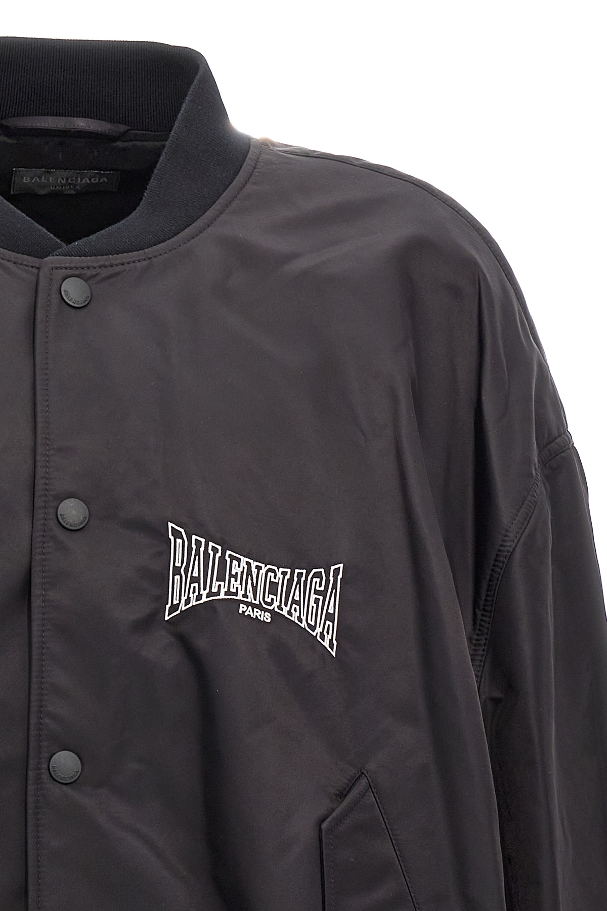 'Varsity Balenciaga Boxing' nylon bomber jacket with front logo embroidery, zip closure, long sleeves with knitted cuffs.