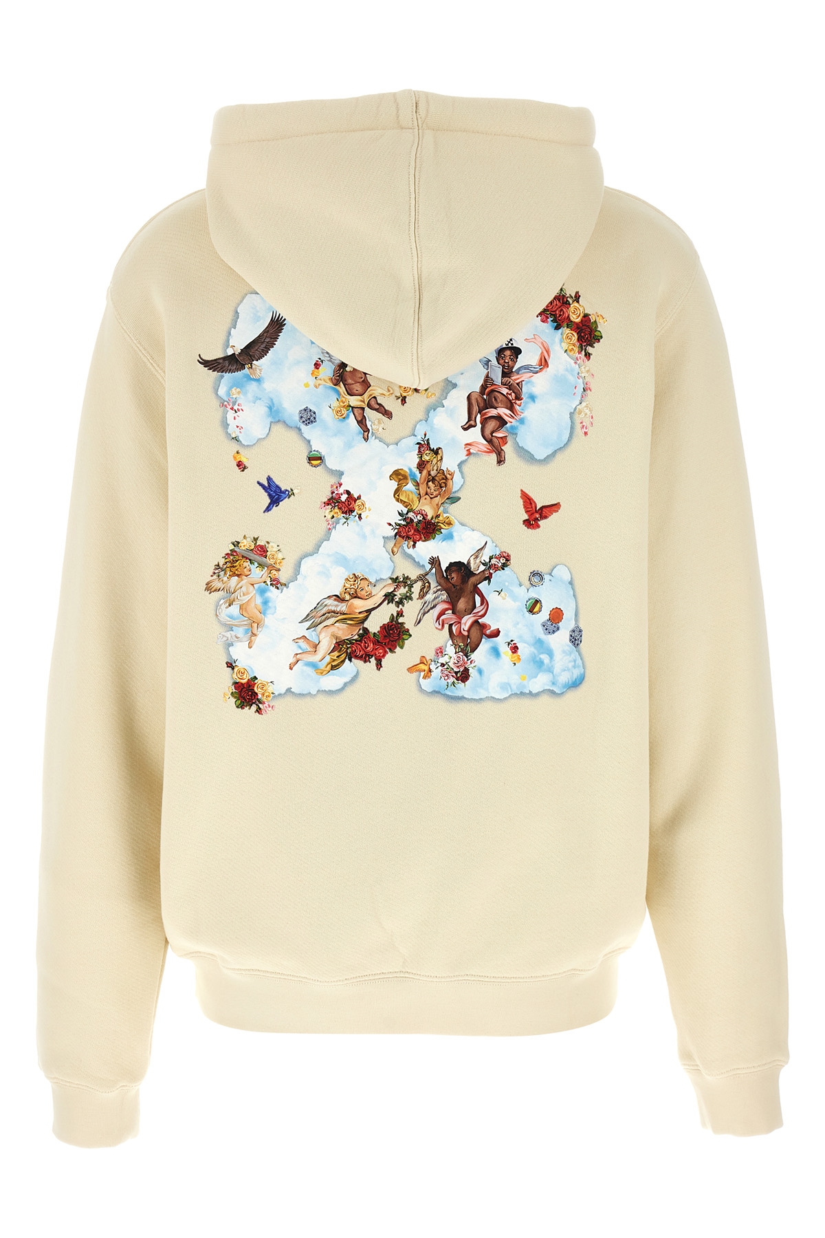 Brushed cotton hoodie with front logo print, Rose Valley print on the back, long cuffed sleeves.