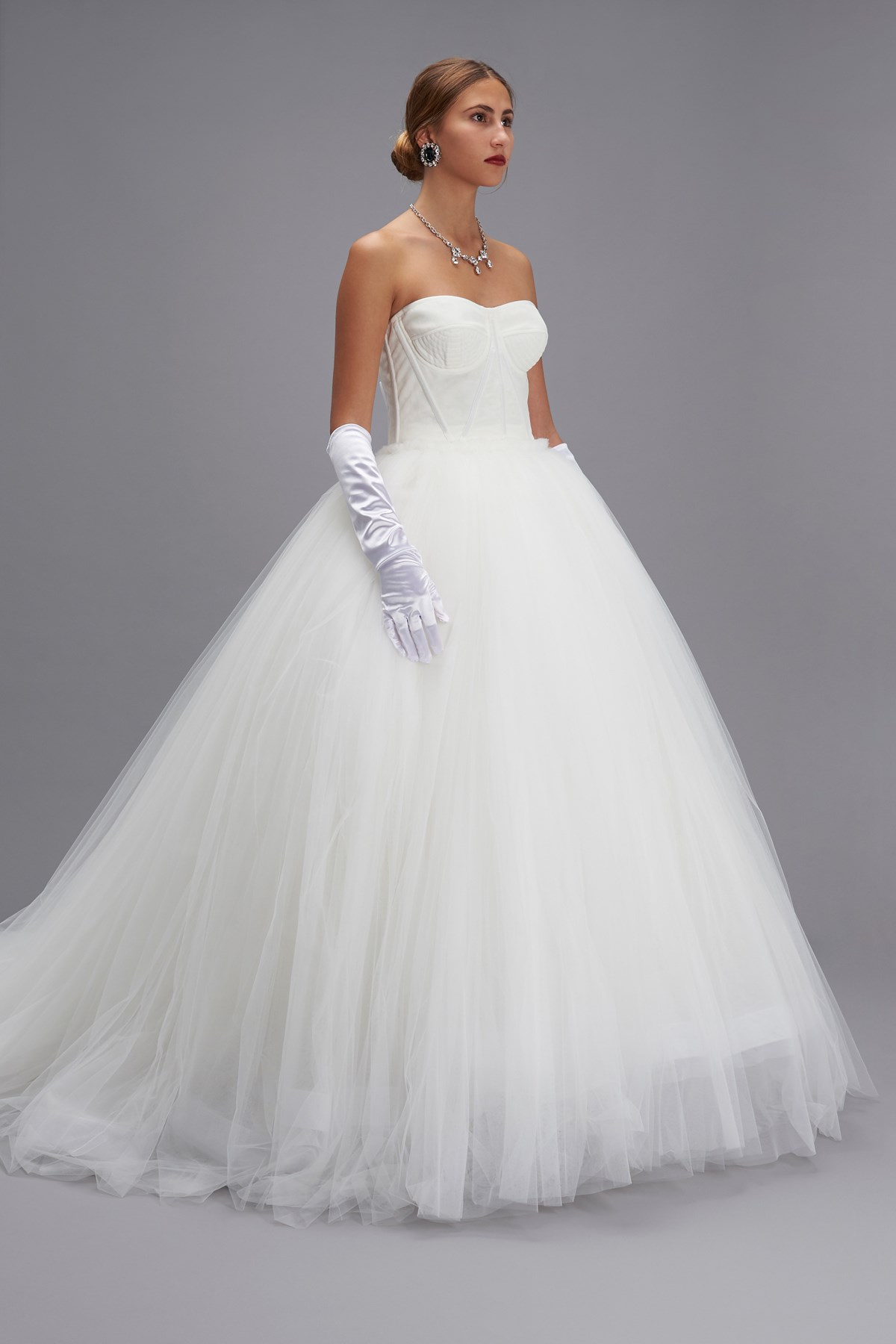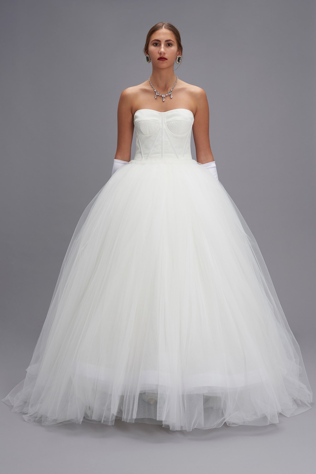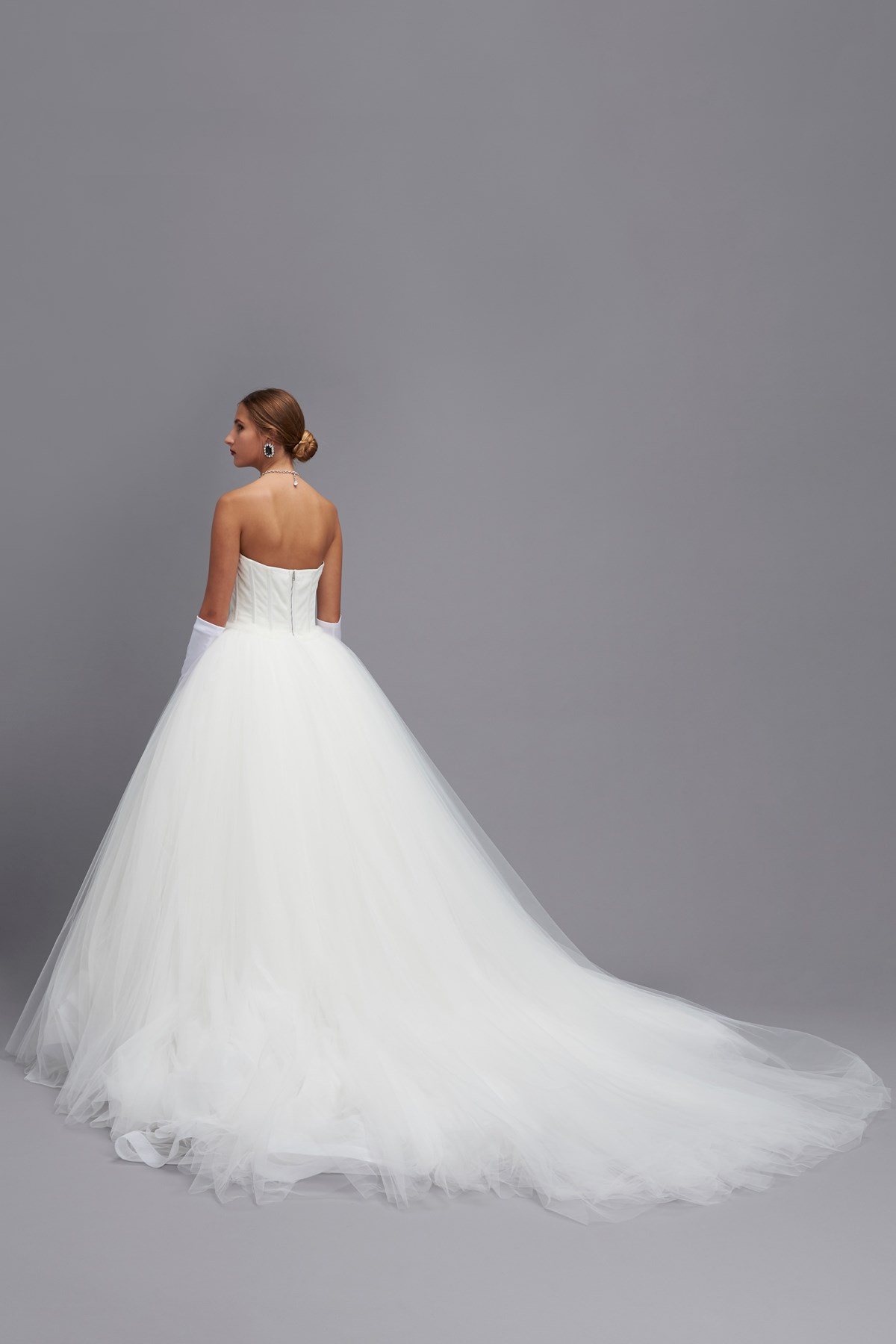 White Polyamide Tulle Traing Heart neckline bustier Zip and hooks closure