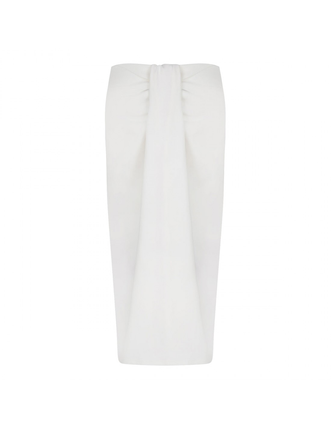 White stretch viscose The Sablier dress from Jacquemus featuring pencil silhouette, high waist, fitted shape, below-the-knee length, zip fastening along side and twin stitched hem.