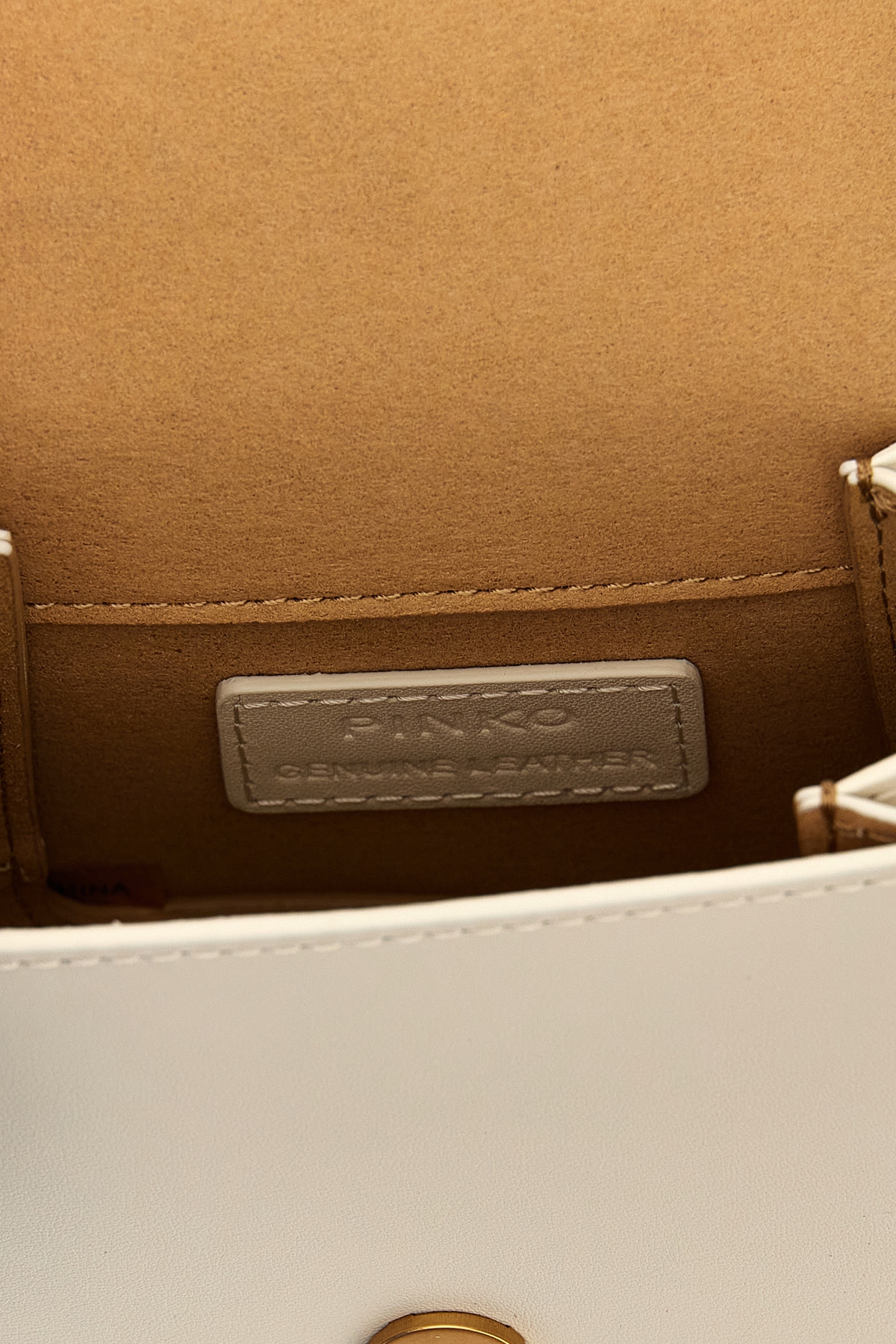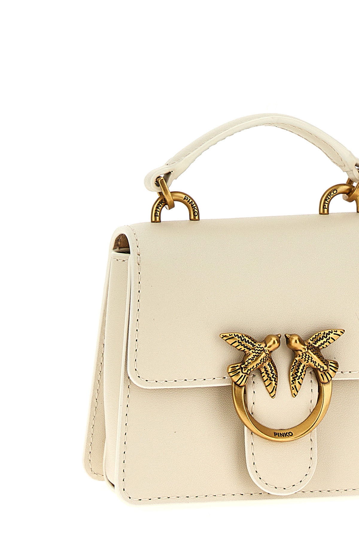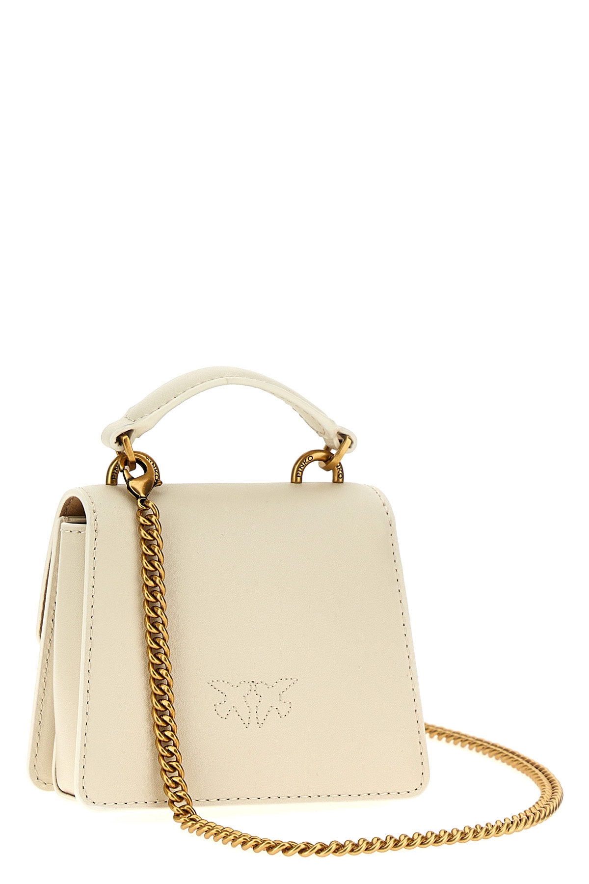 'Love One Micro' leather handbag, magnetic closure with front logo applique, fixed handle, removable chain shoulder strap.