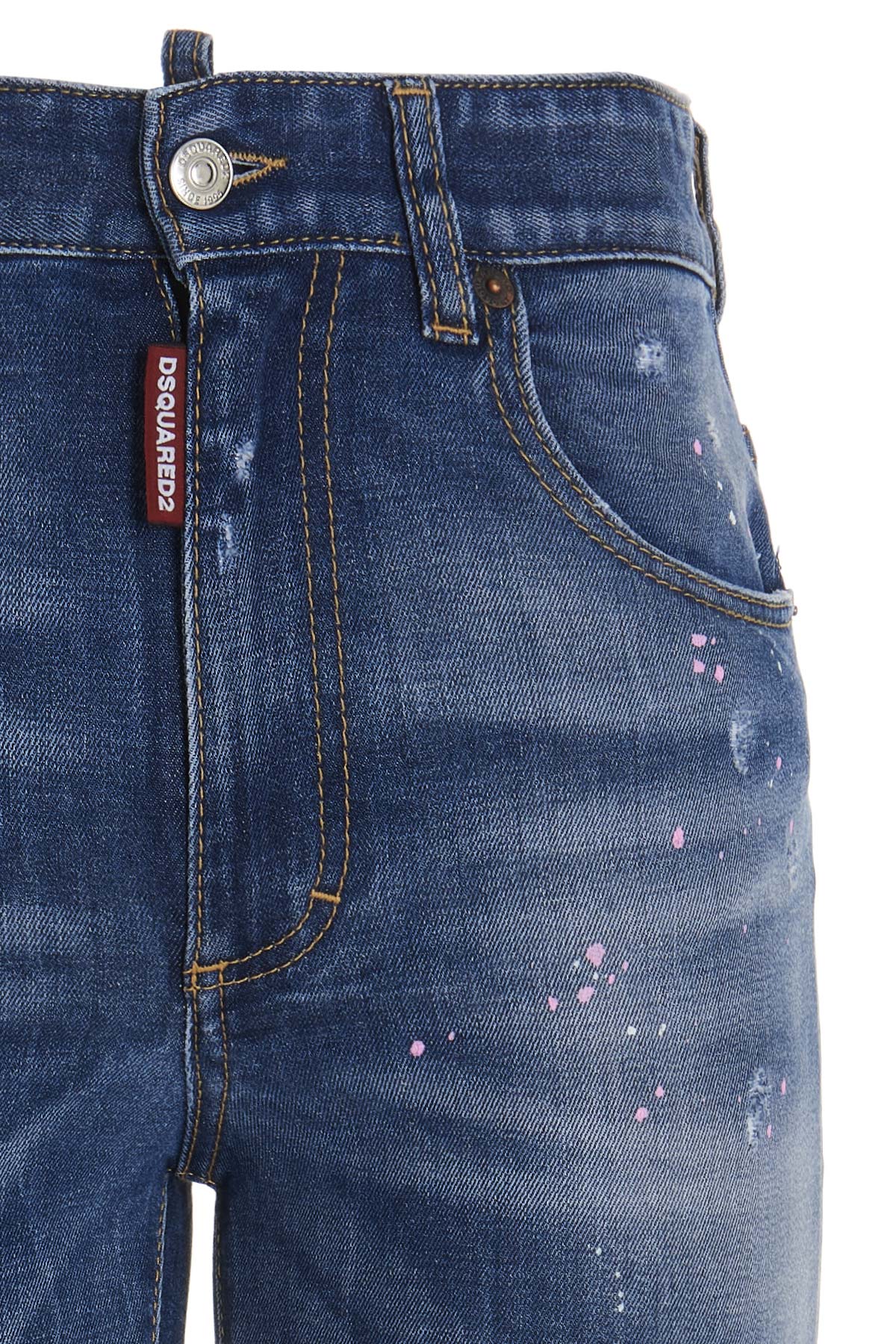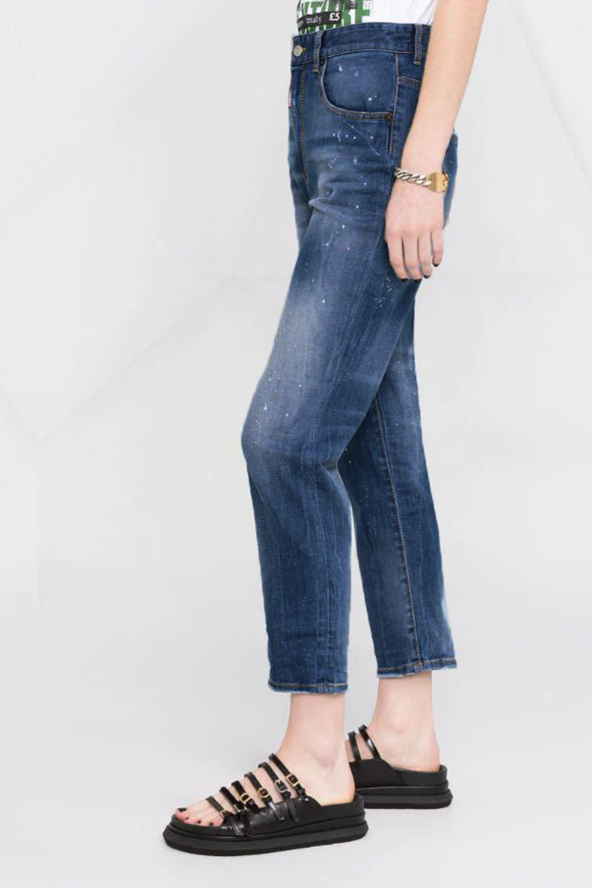 'Twiggy' five-pocket denim jeans with zip and button closure, high waist, washed effect, destroyed and all-over paint details. High waist, cropped fit.