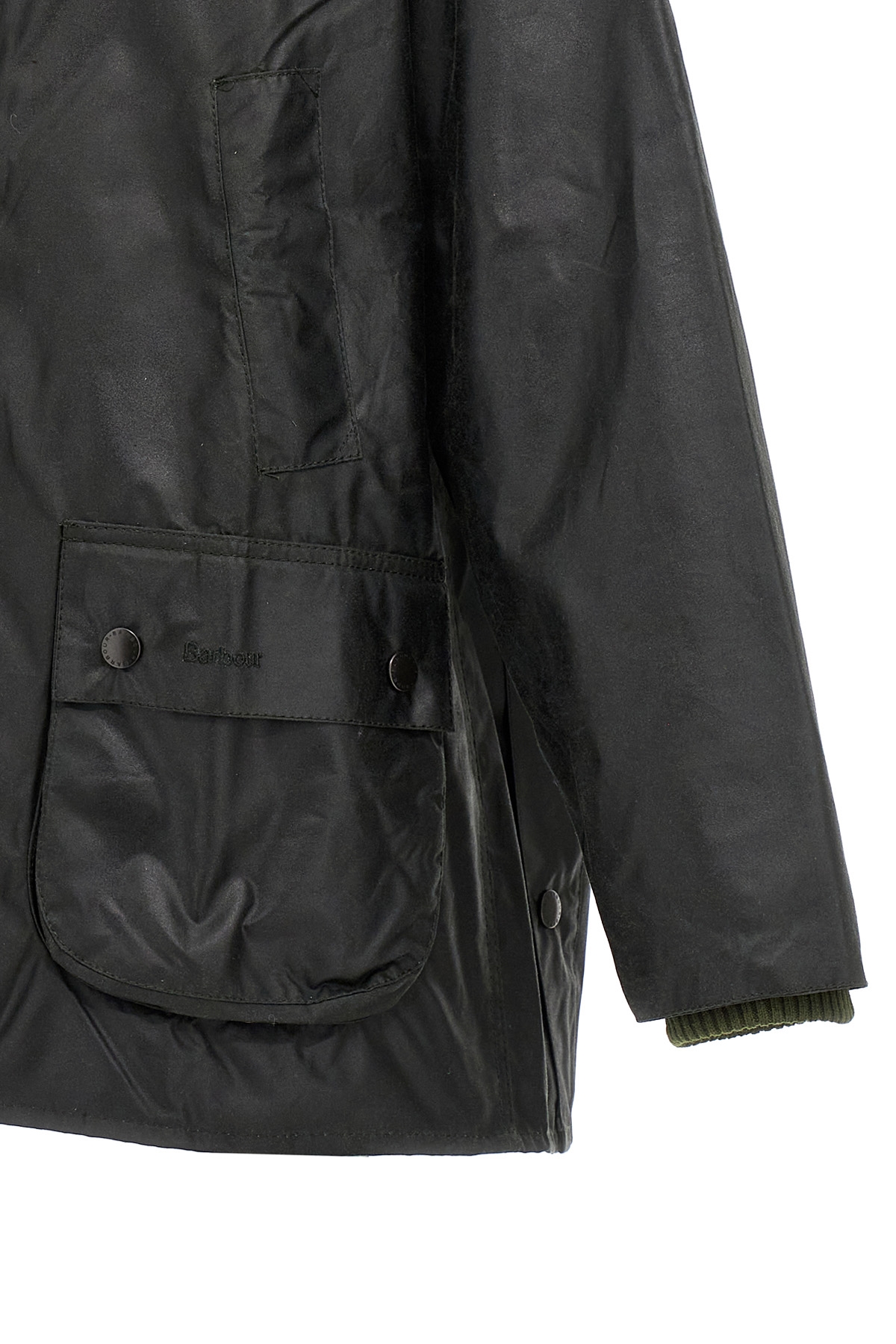 'Bedale' waxed cotton jacket with corduroy collar, double zip and button closure, pockets, long sleeves, side slits with buttons.