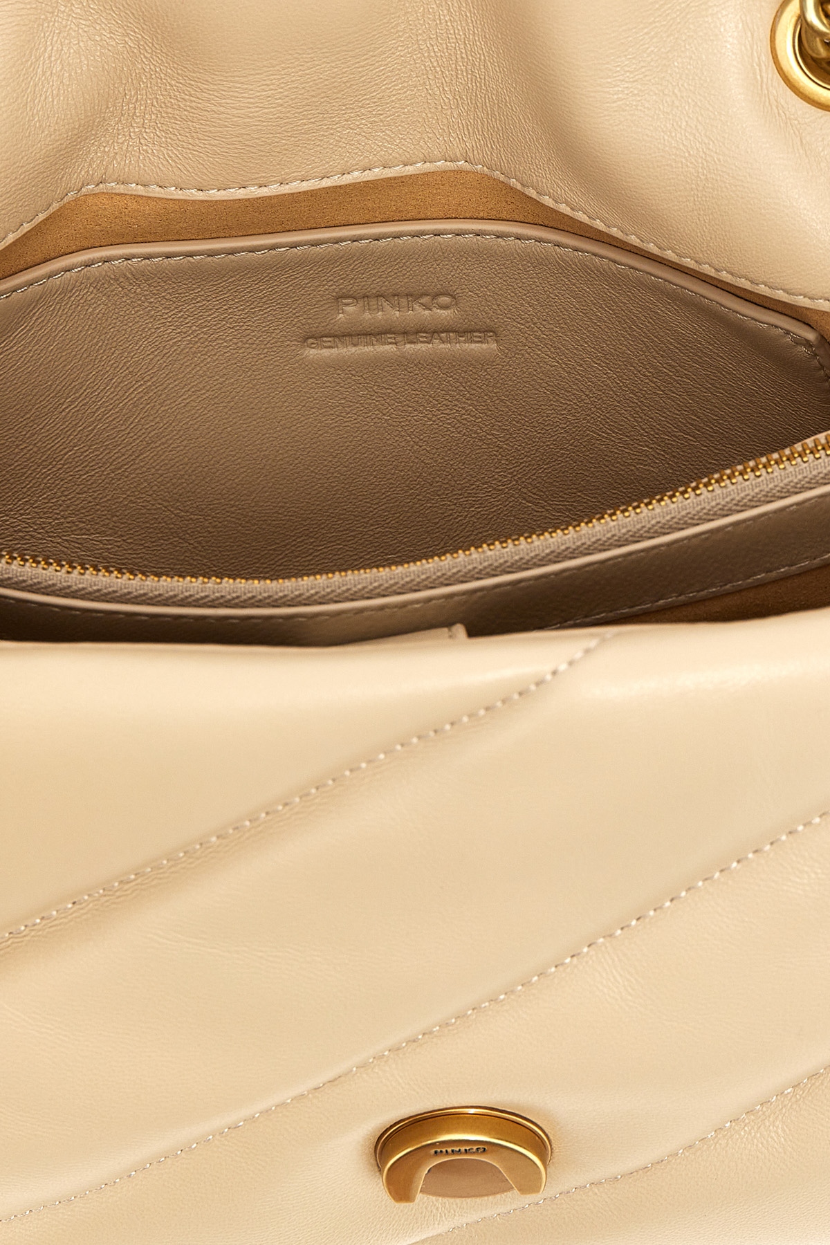 Classic Love Bag Puff Maxi Quilt' quilted leather crossbody bag with flap closure, front metal logo, and chain shoulder strap.