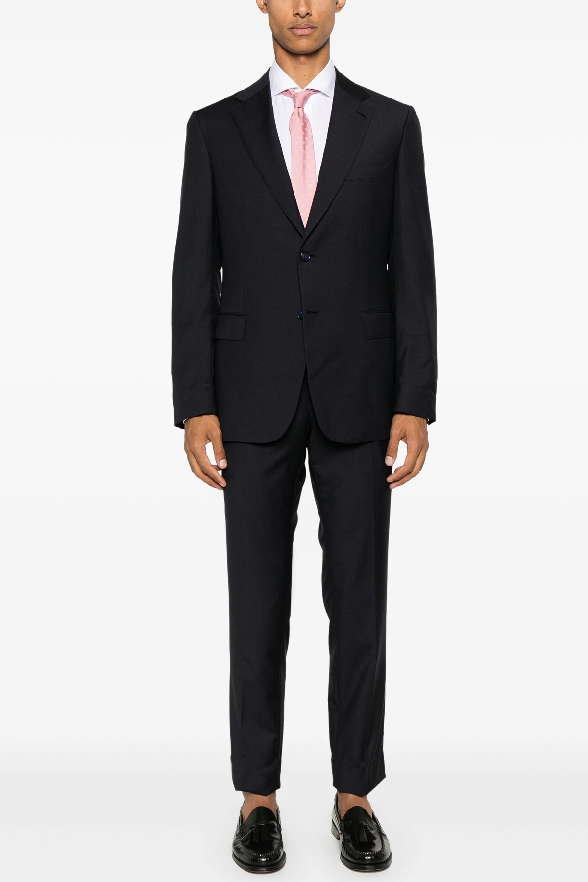 'Trevi' wool and mohair dress consisting of single-breasted blazer with button closure, pockets, long sleeves, back slits and pants with zip, hook and button closure, pockets.