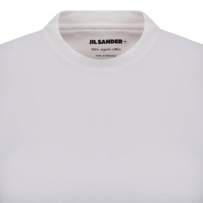 Set of three white cotton jersey T-shirts from Jil Sander featuring crew-neck, short sleeves, logo tag on the front.