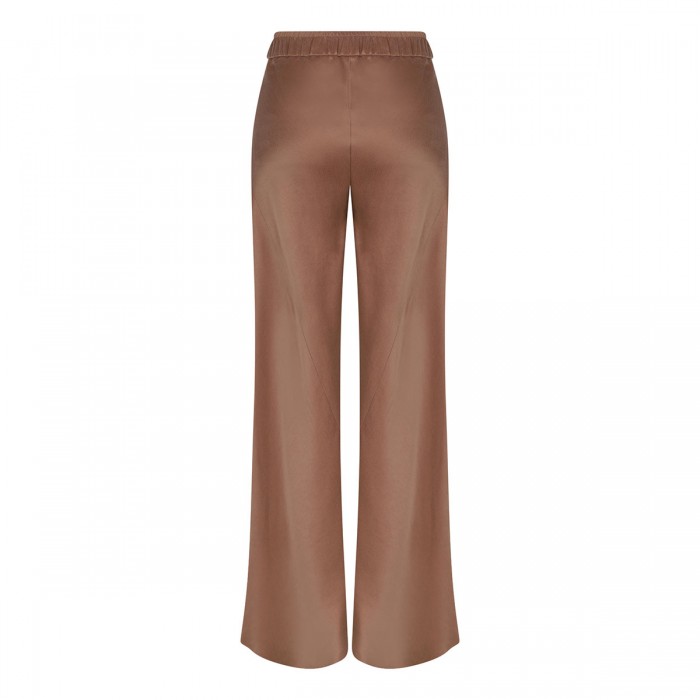 Red clay hue silk-blend palazzo pants from Giorgio Armani featuring elastic waistband, two side patch pockets and wide leg.