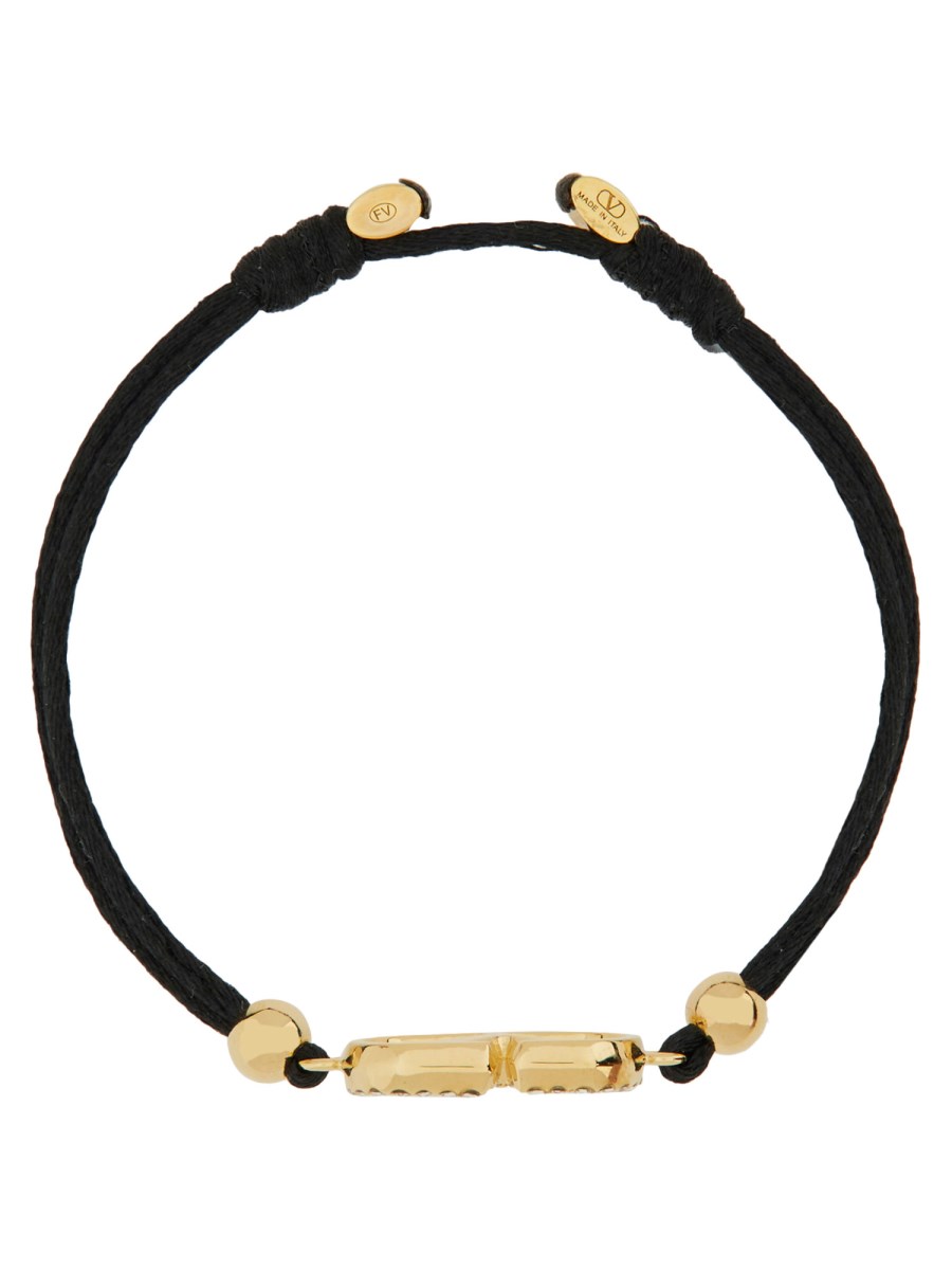 > 코튼 AND SWAROVSKI® 크리스탈 브이로고 시그니처 팔찌