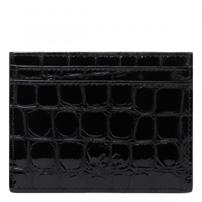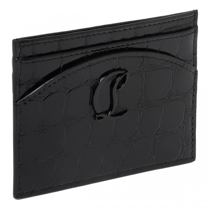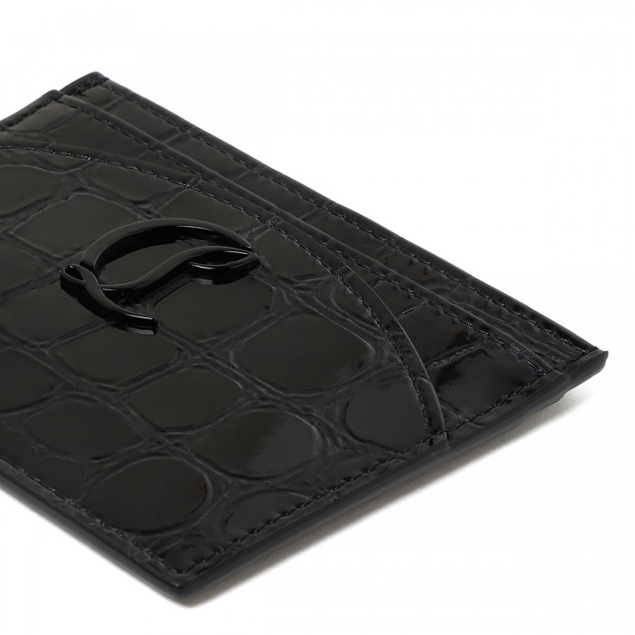 Black croc-embossed leather Loubi54 card holder from Christian Louboutin featuring gold CL monogram, accordion compartment with zip fastening, one flat back pocket, one zipped pocket, five credit card slots, iconic Loubi red lining.