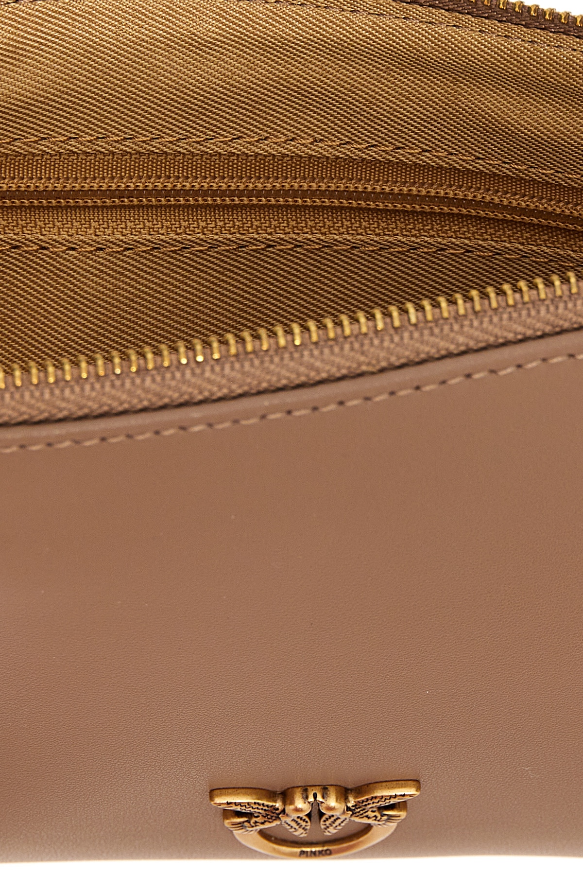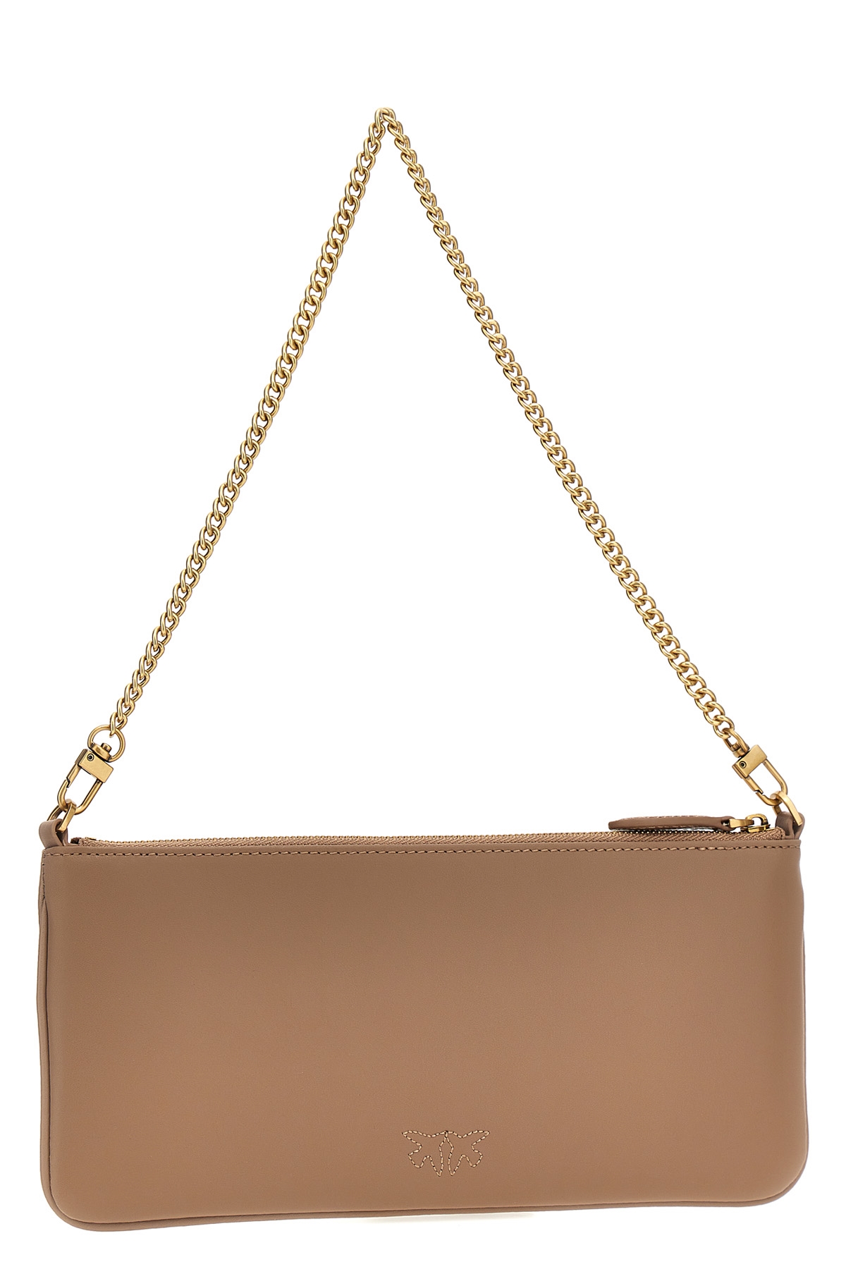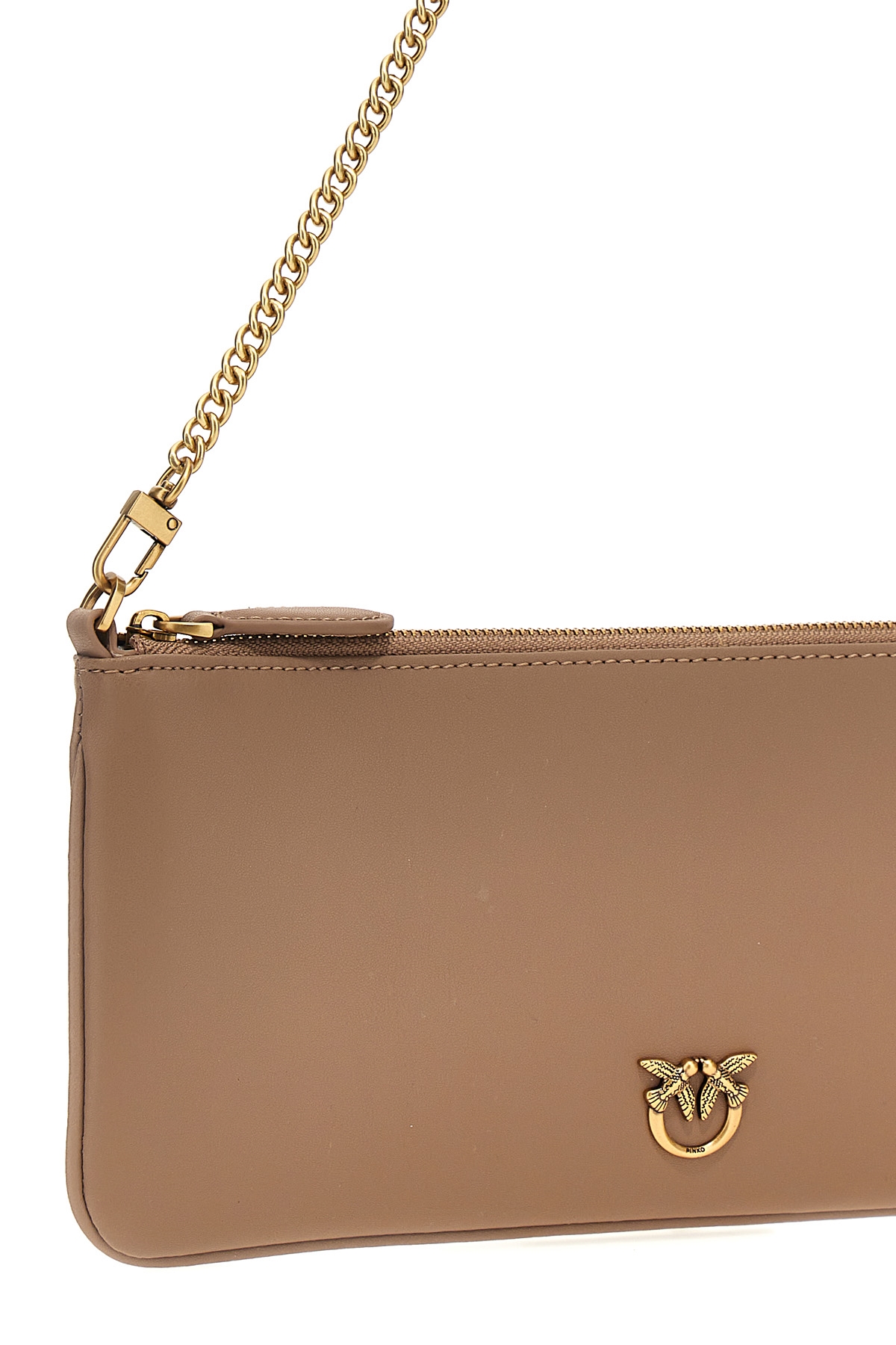 'Horizontal Flat' leather clutch bag with front metal logo, zip closure, chain handle.
