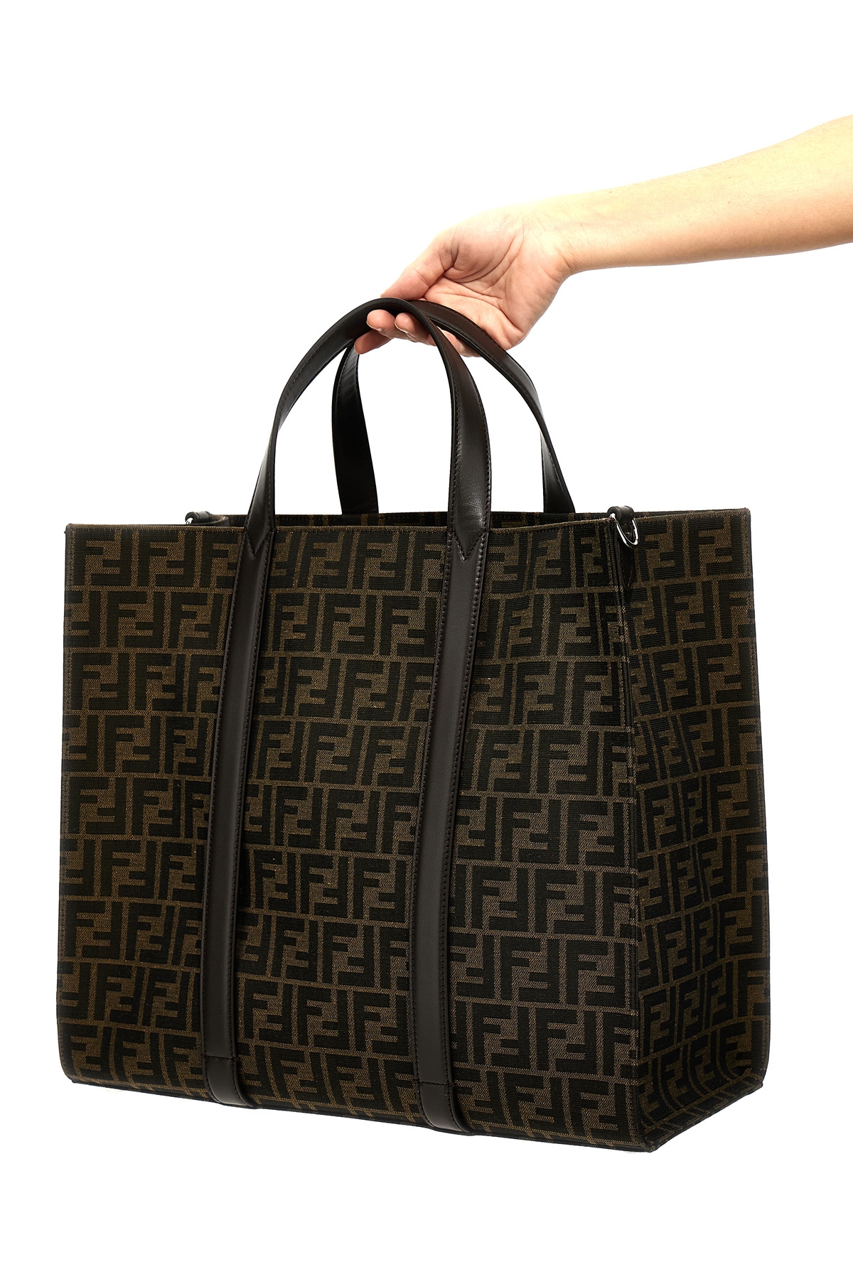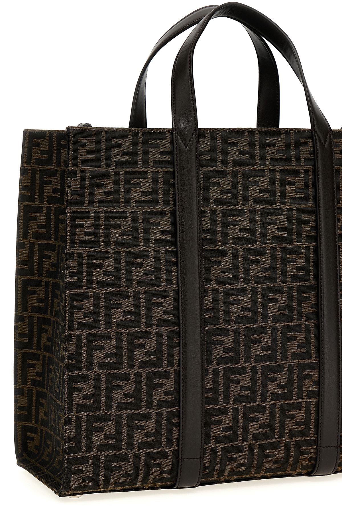 Shopping bag in 'FF' jacquard fabric, leather details and double handle, adjustable and removable shoulder strap.