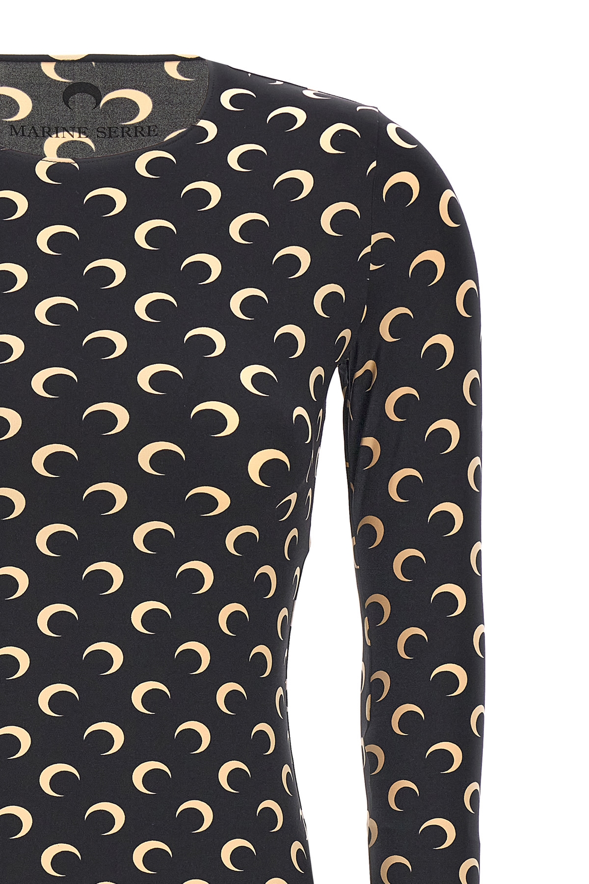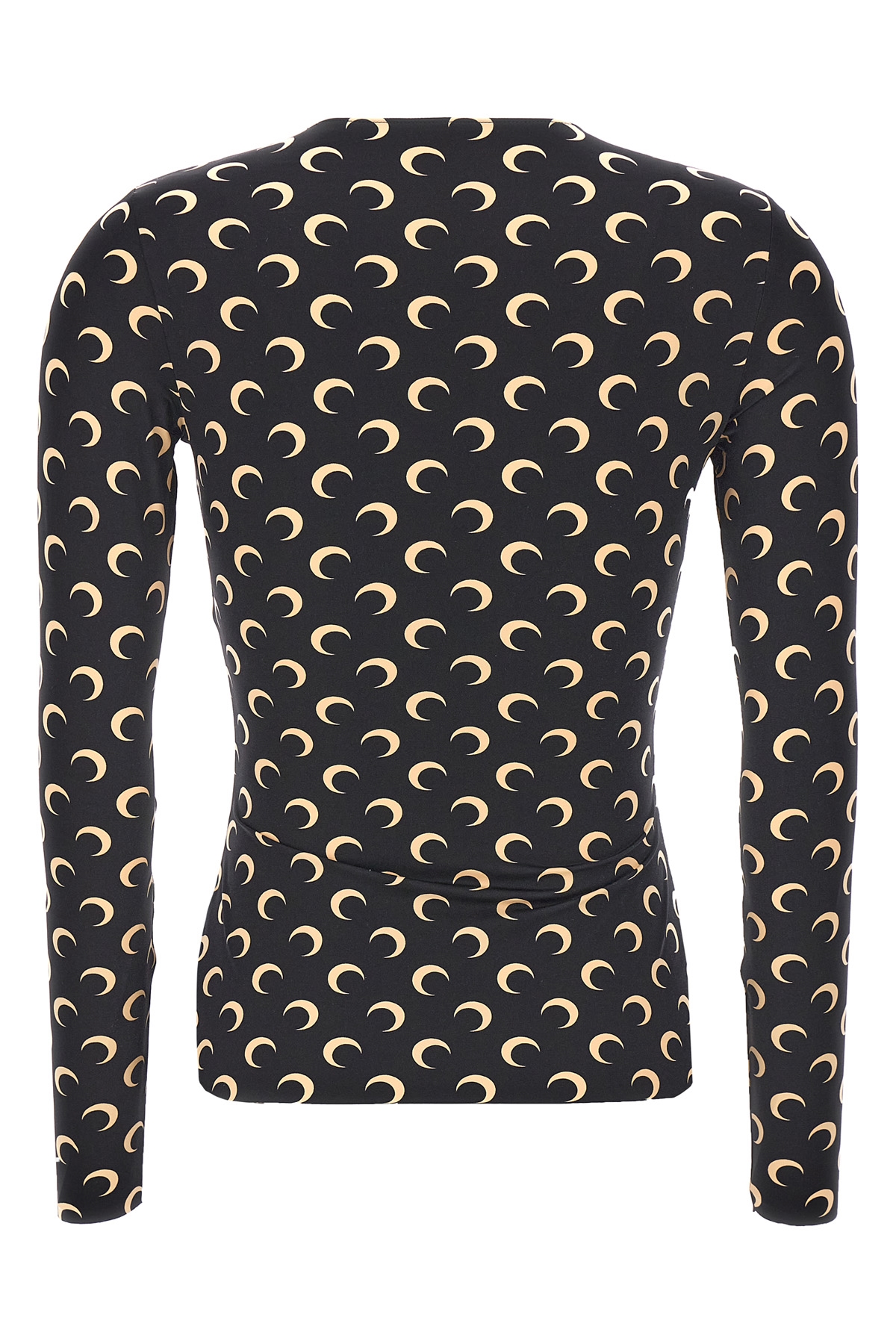 'Moon Printed Jersey' top in stretch fabric with all-over logo, long sleeves, crew neck.