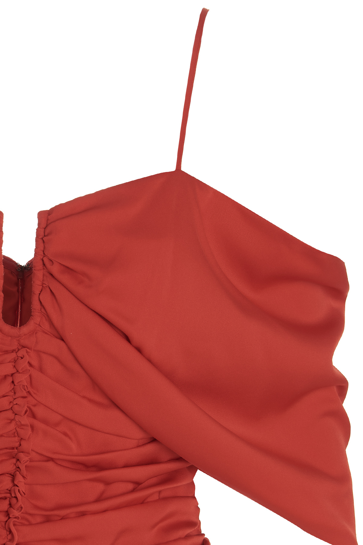 Amani' stretch silk top with all-over draping, adjustable shoulder straps, drop shoulders, back zip closure and a cropped style.