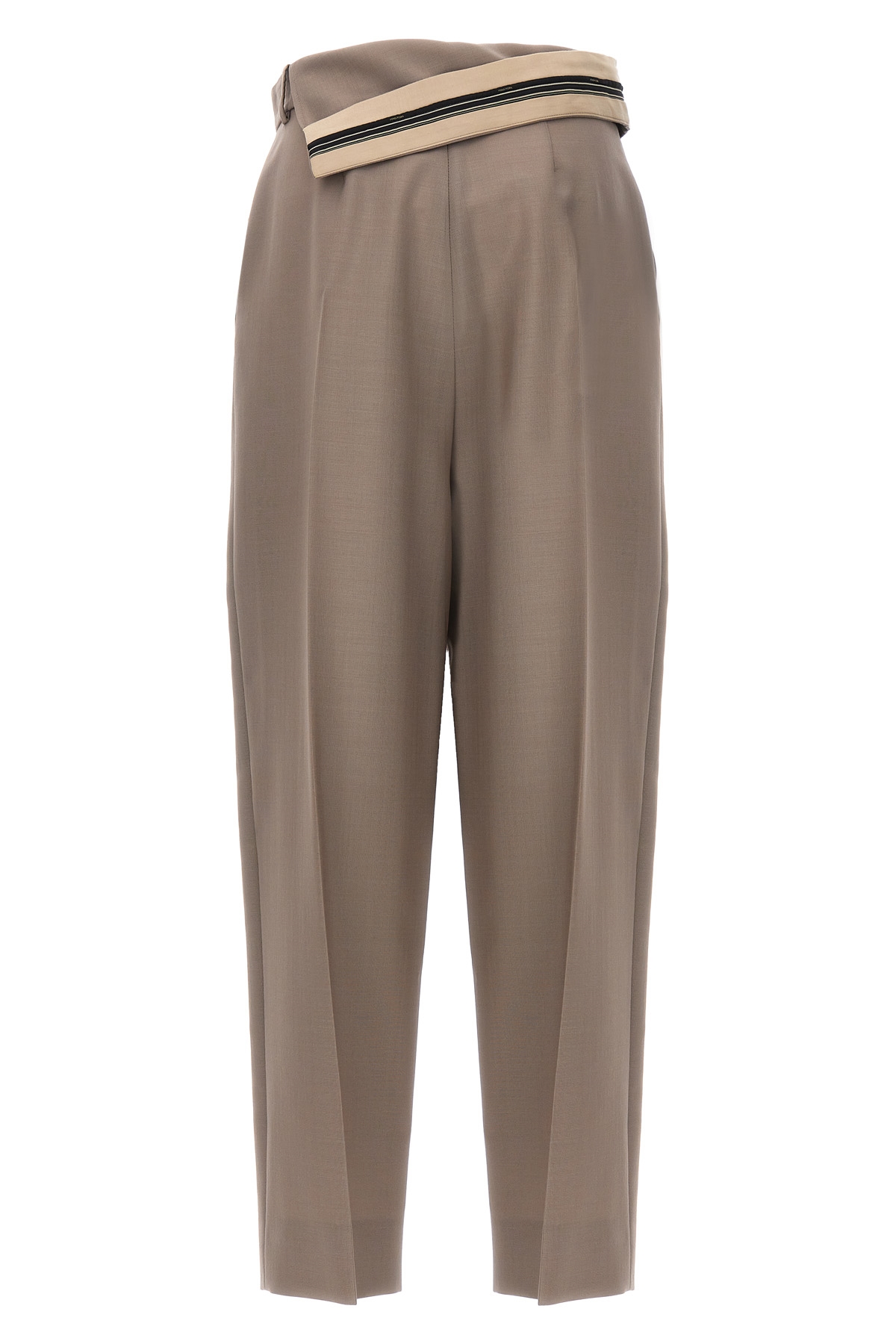 Mohair blend wool pants, carrot fit model with asymmetric waist, zip and hook closure.