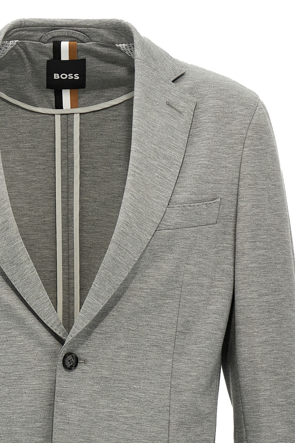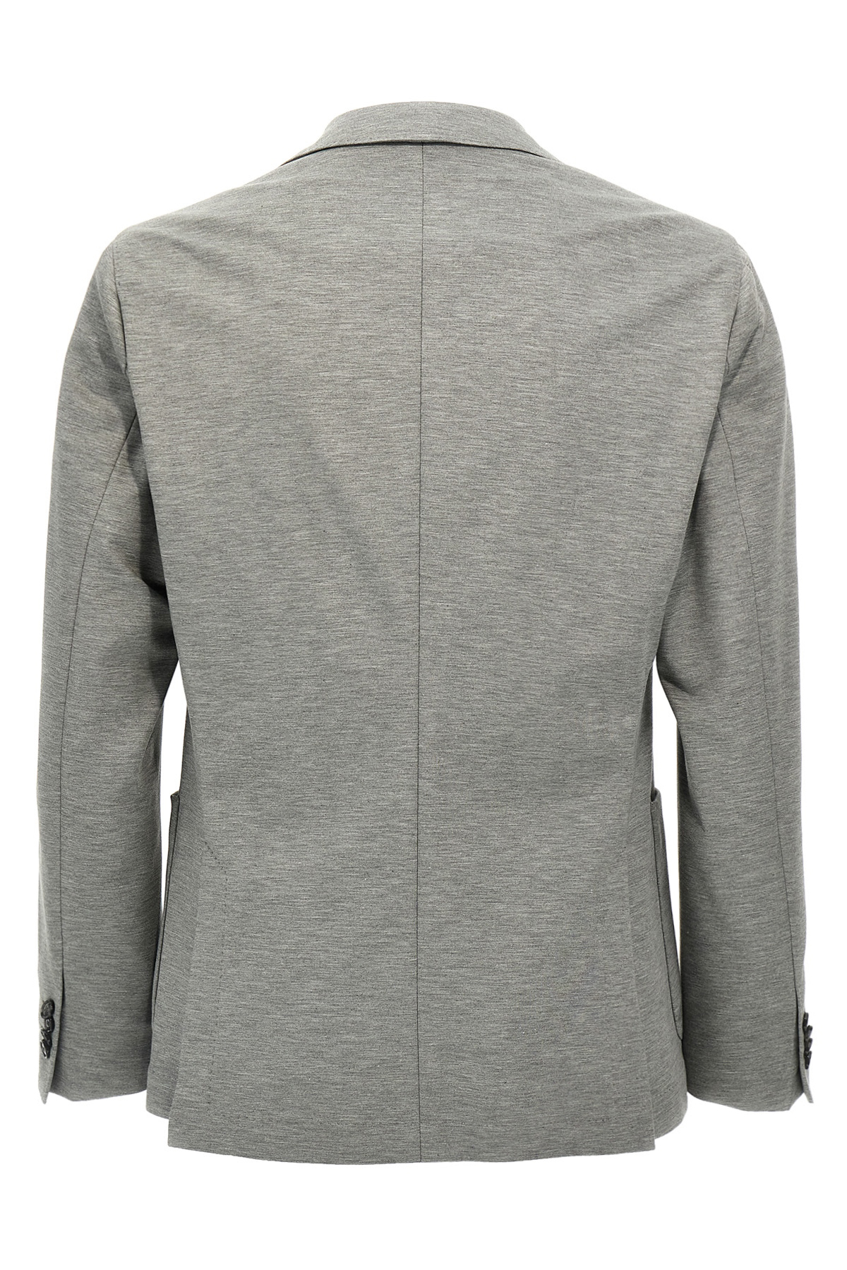 'Hanry J' single-breasted blazer in stretch melange cotton jersey with mirror lapels, button closure, pockets, long sleeves, back side slits.