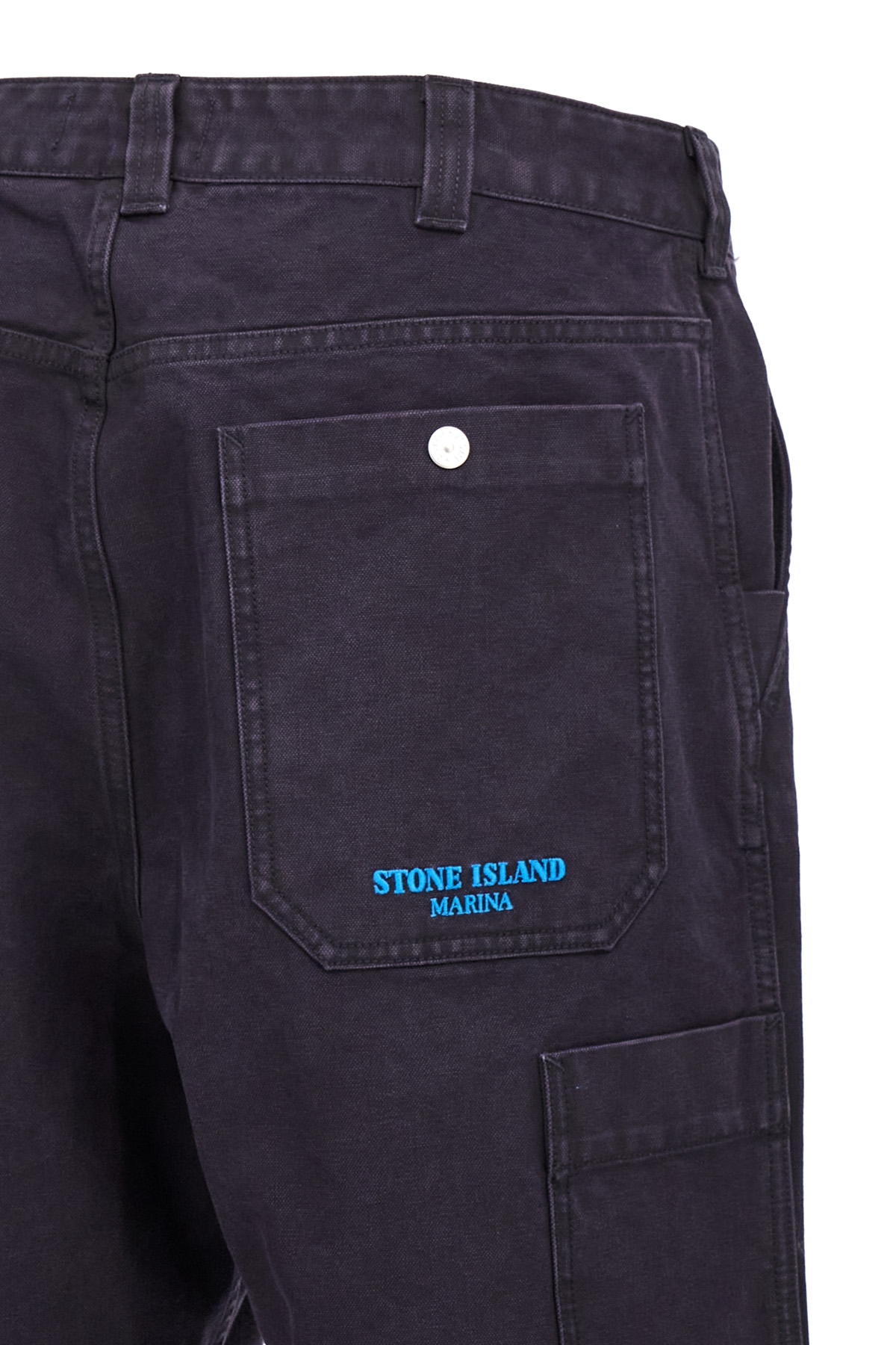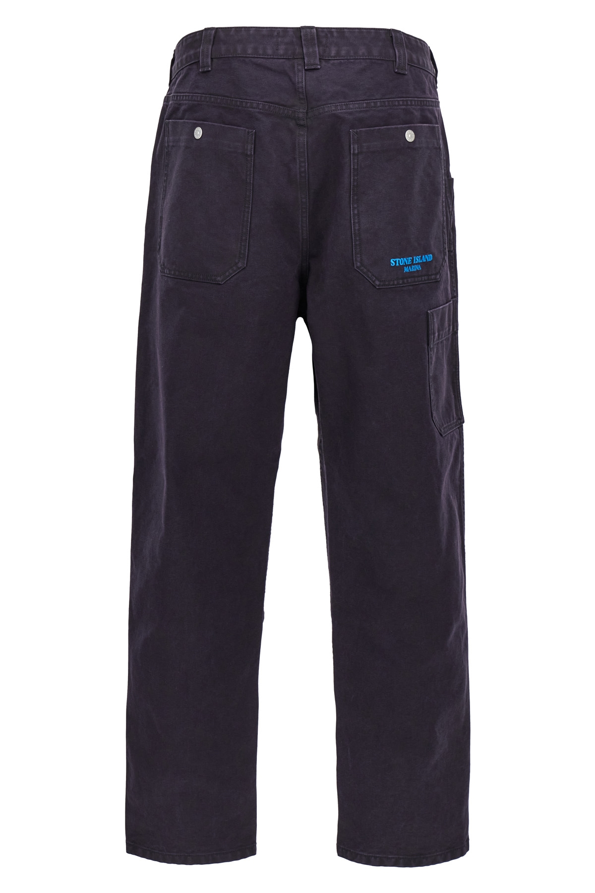 Canvas pants with embroidered logo on the back, button closure, pockets.