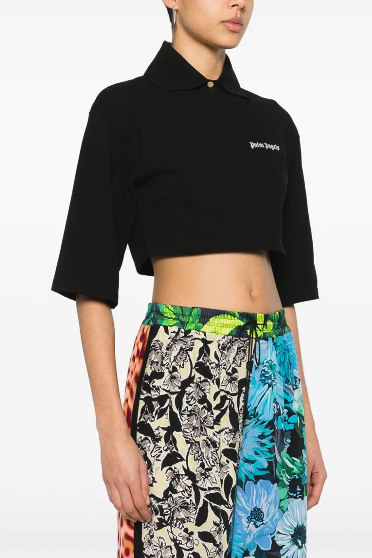 Crop polo shirt in cotton piquet with front 'Classic Logo' embroidery, 3/4 sleeves.