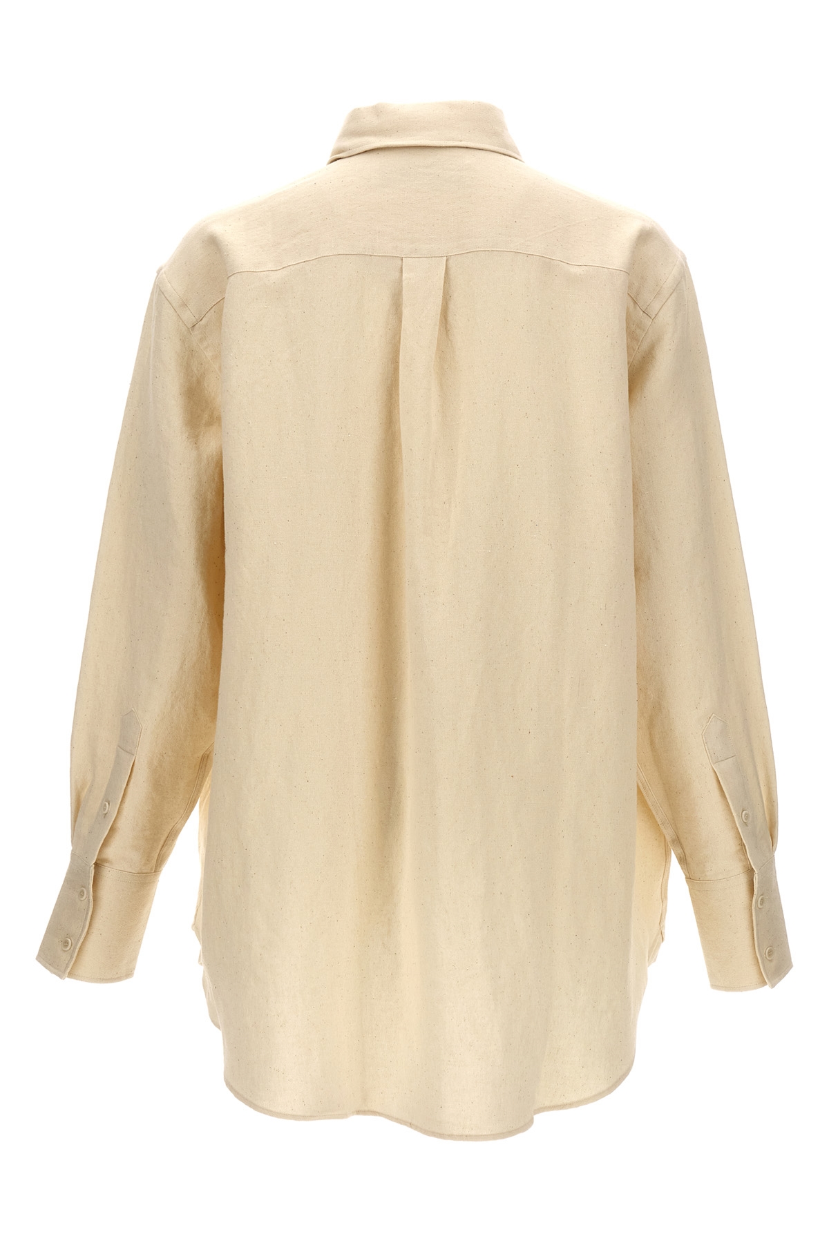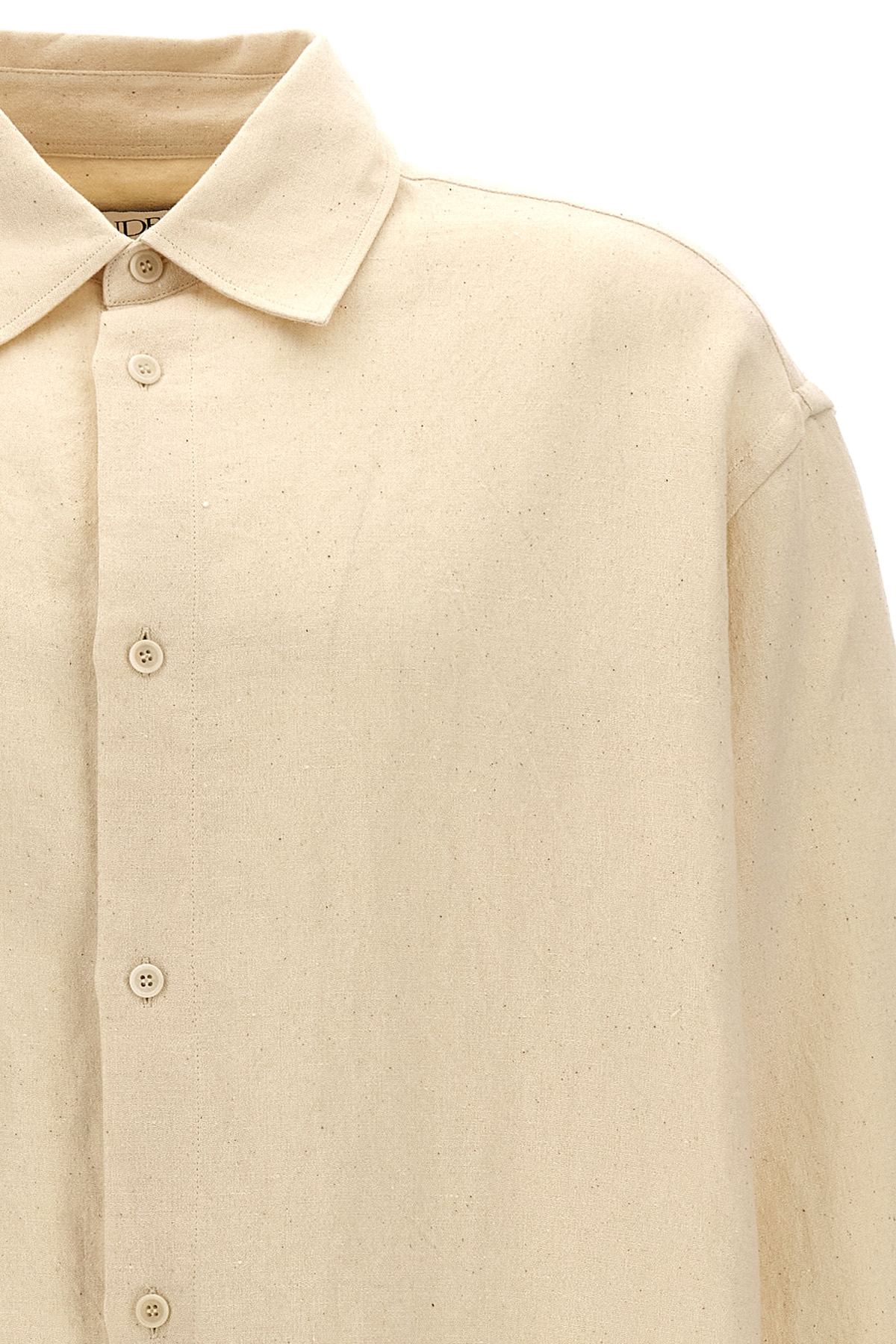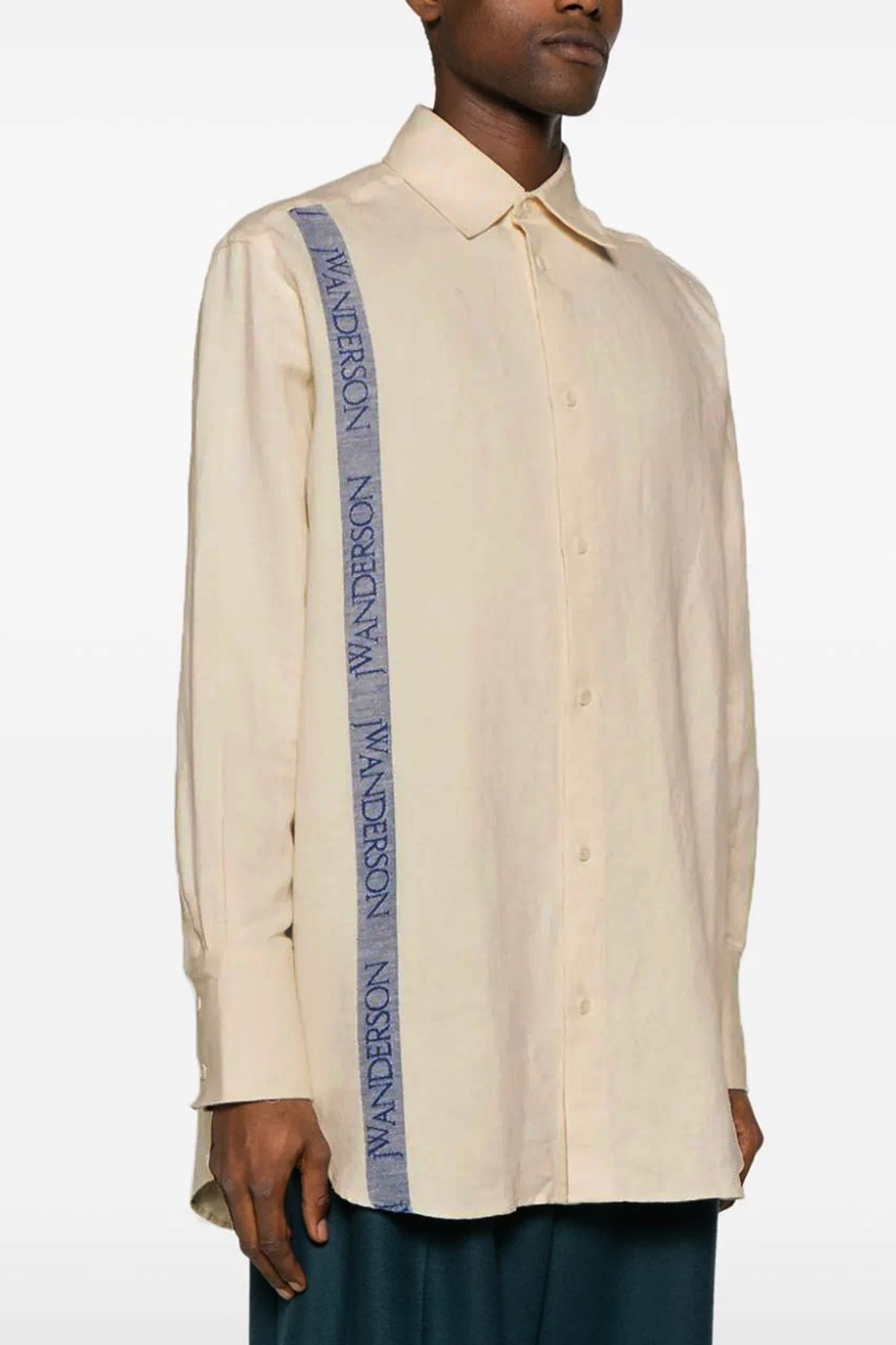 'Tea towel' cotton blend linen shirt with button closure and contrasting side logo band.