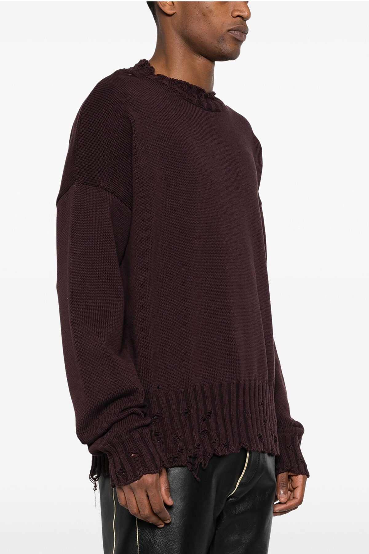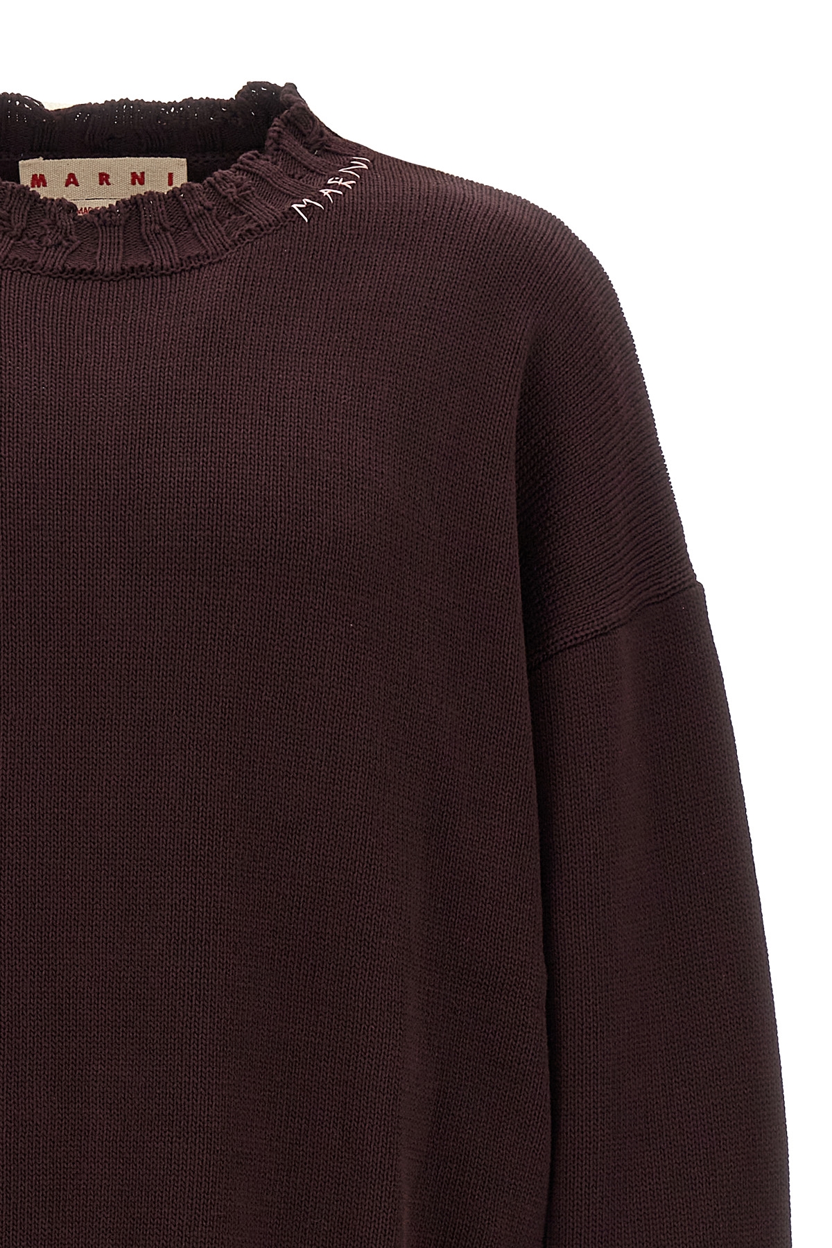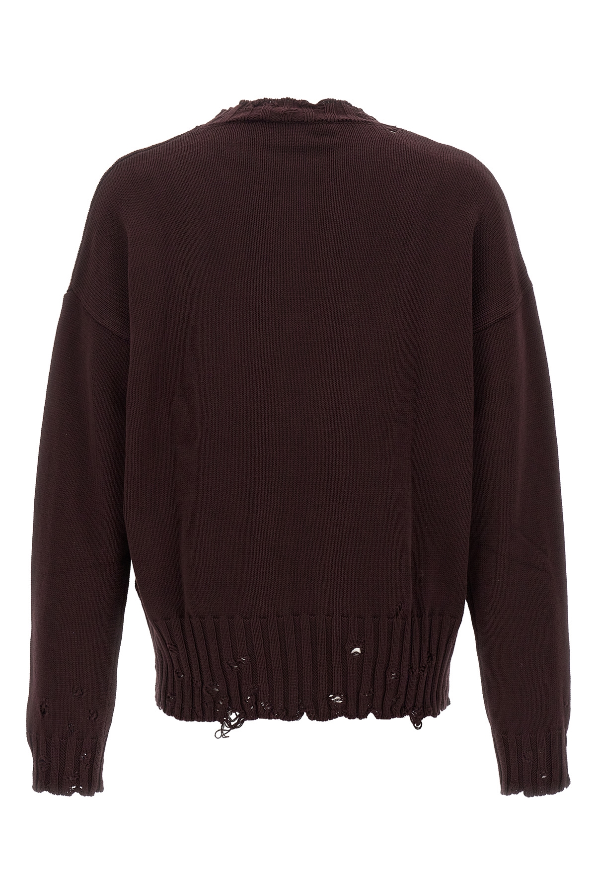 Destroyed effect cotton sweater with crew neck with logo embroidery and long cuffed sleeves.