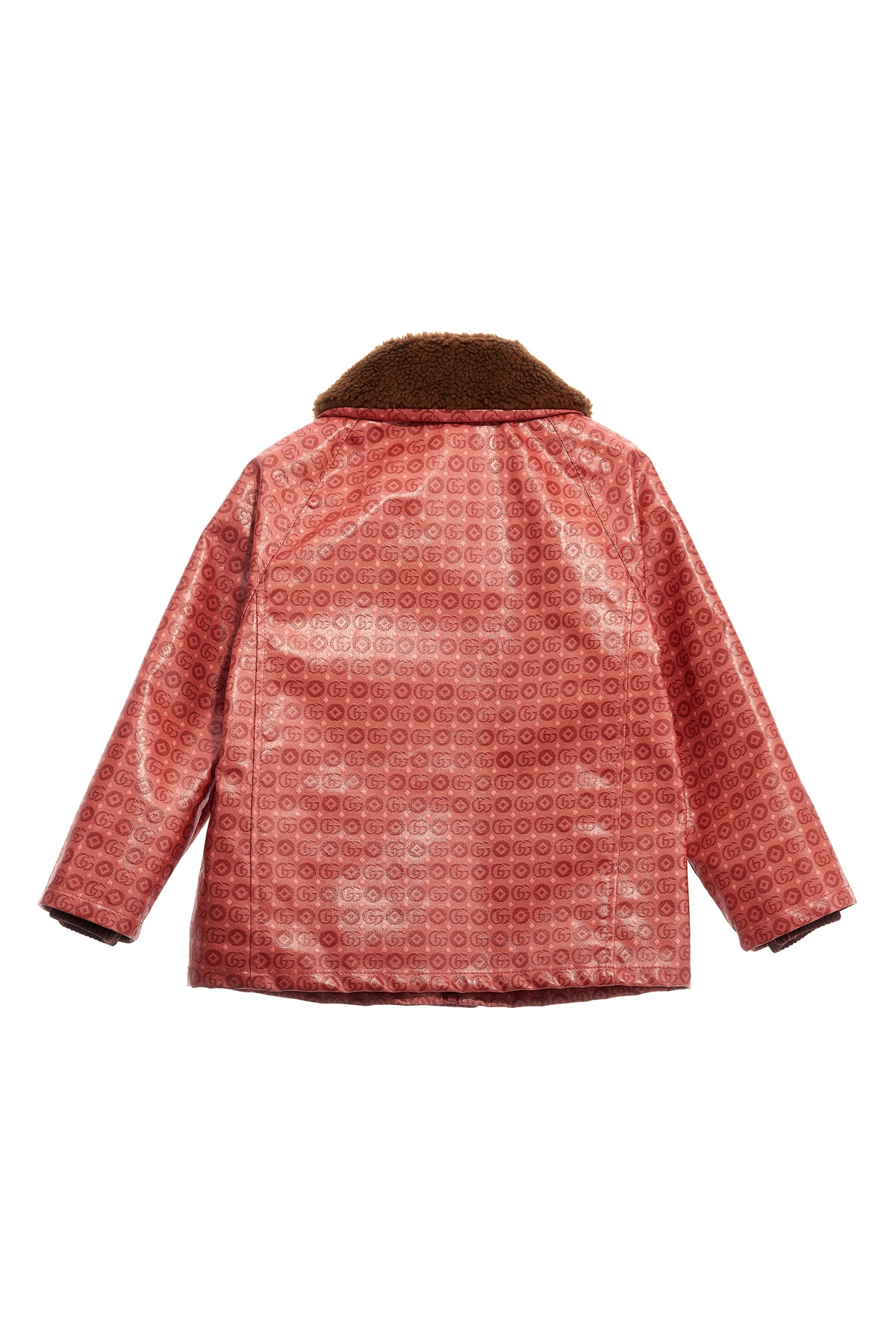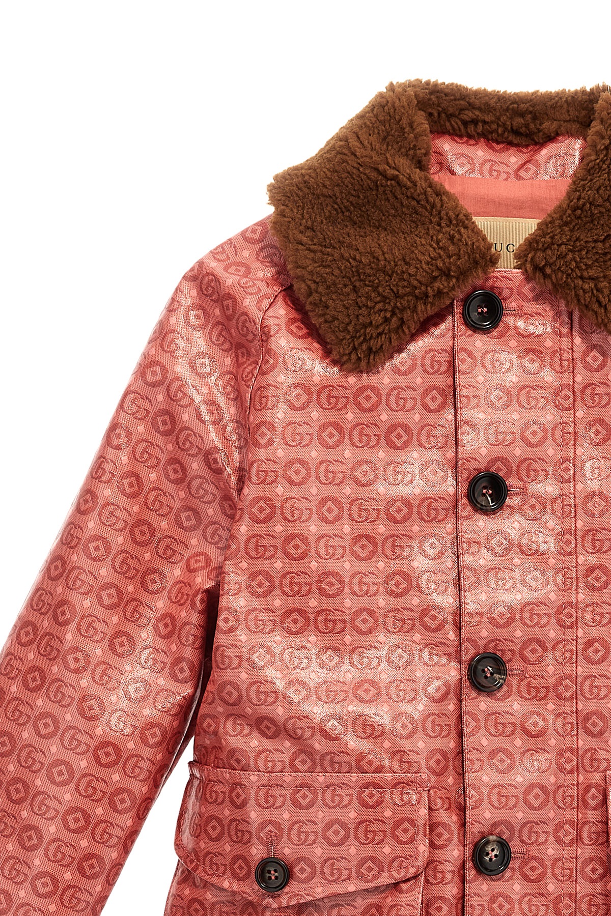 KIDS 'GG dots' wool blend canvas jacket with all-over jacquard logo pattern, button closure, pockets, contrast teddy collar.