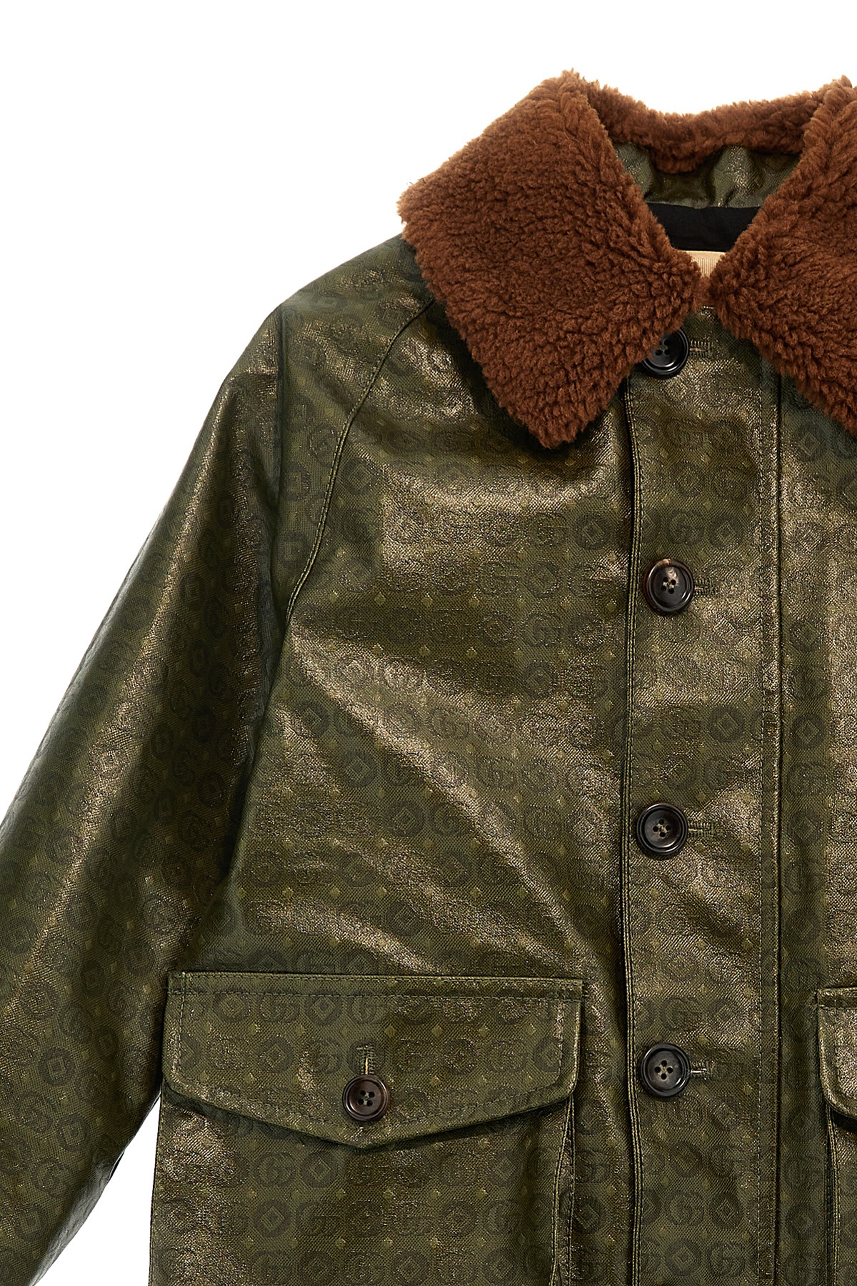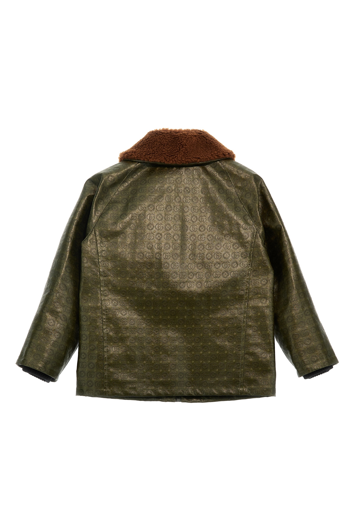KIDS 'GG dots' wool blend canvas jacket with all-over jacquard logo pattern, button closure, pockets, contrast teddy collar.
