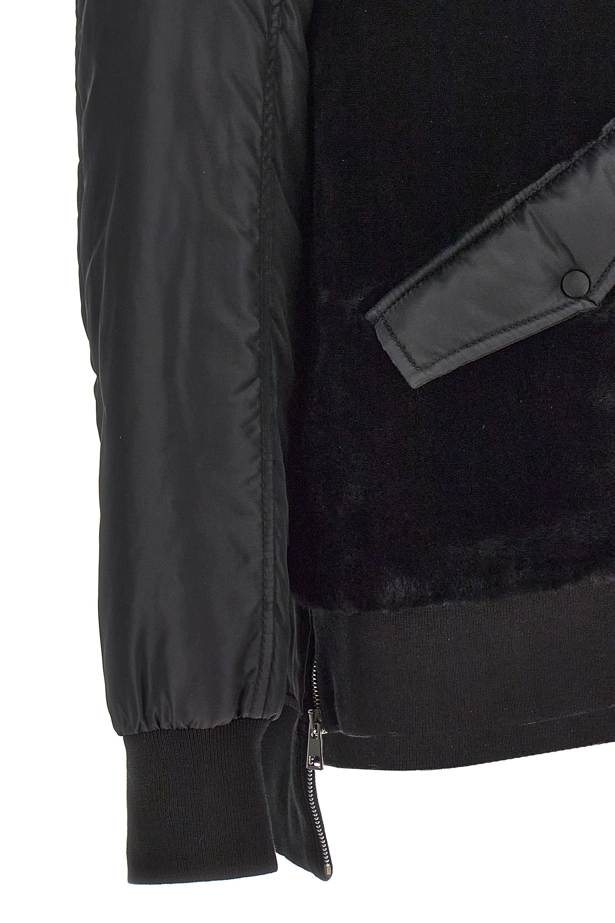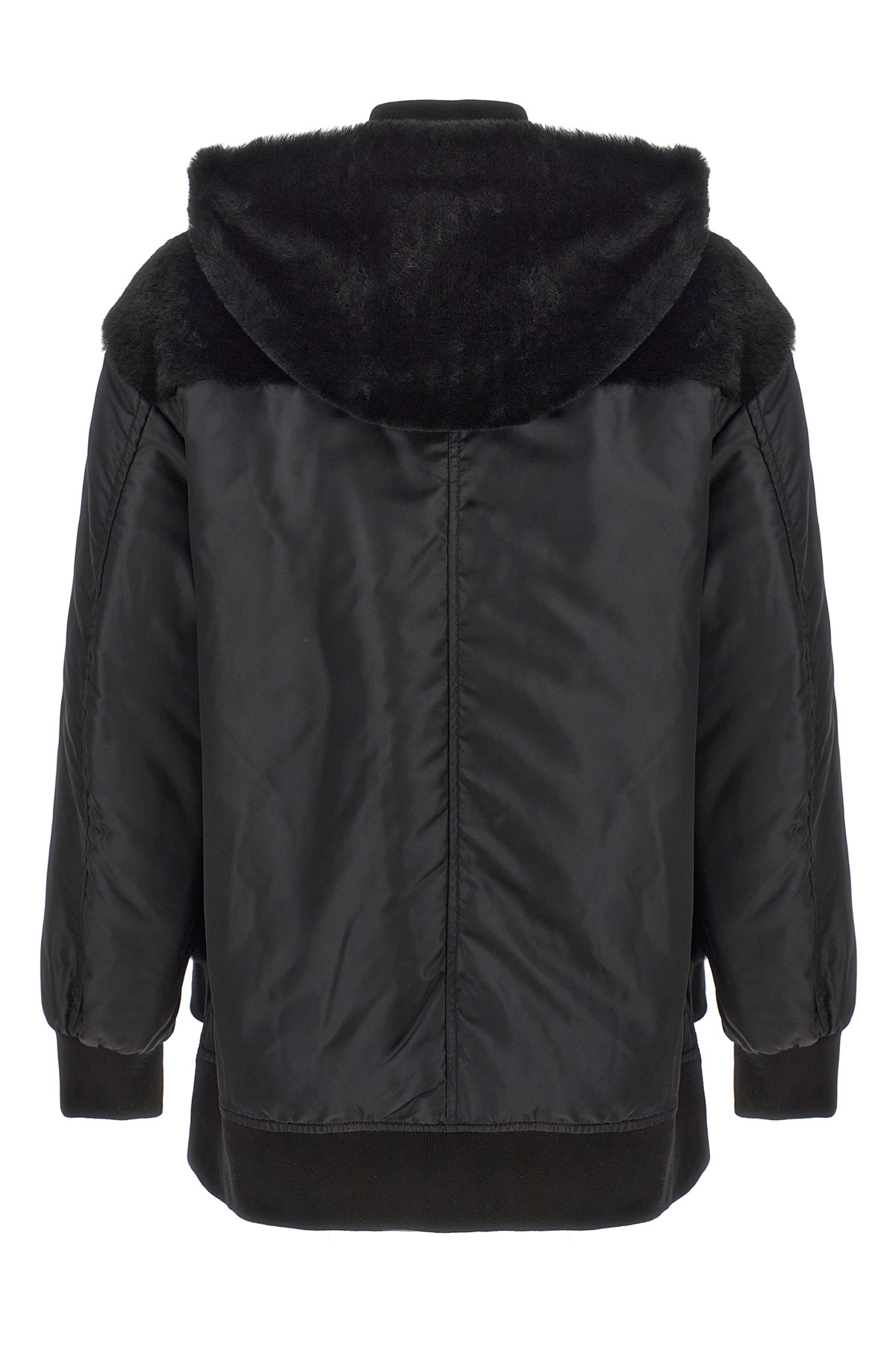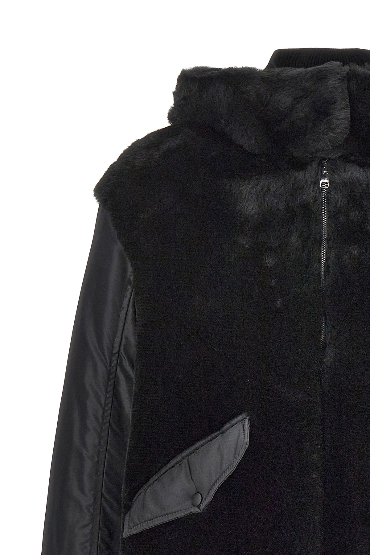 'Merino Straight-Nylon' hooded bomber jacket in nylon and fur, zip closure, pockets, long cuffed sleeves, asymmetrical hem.